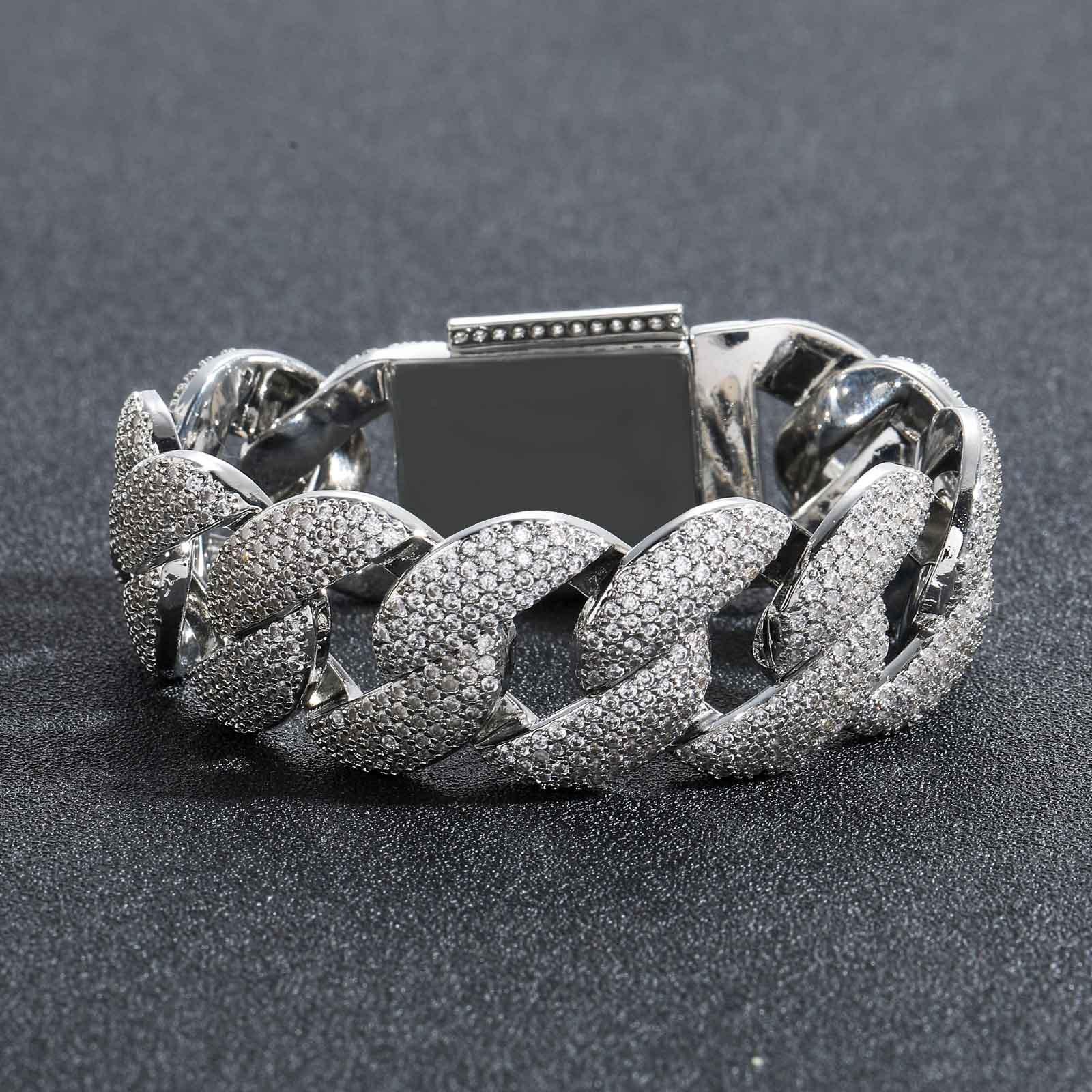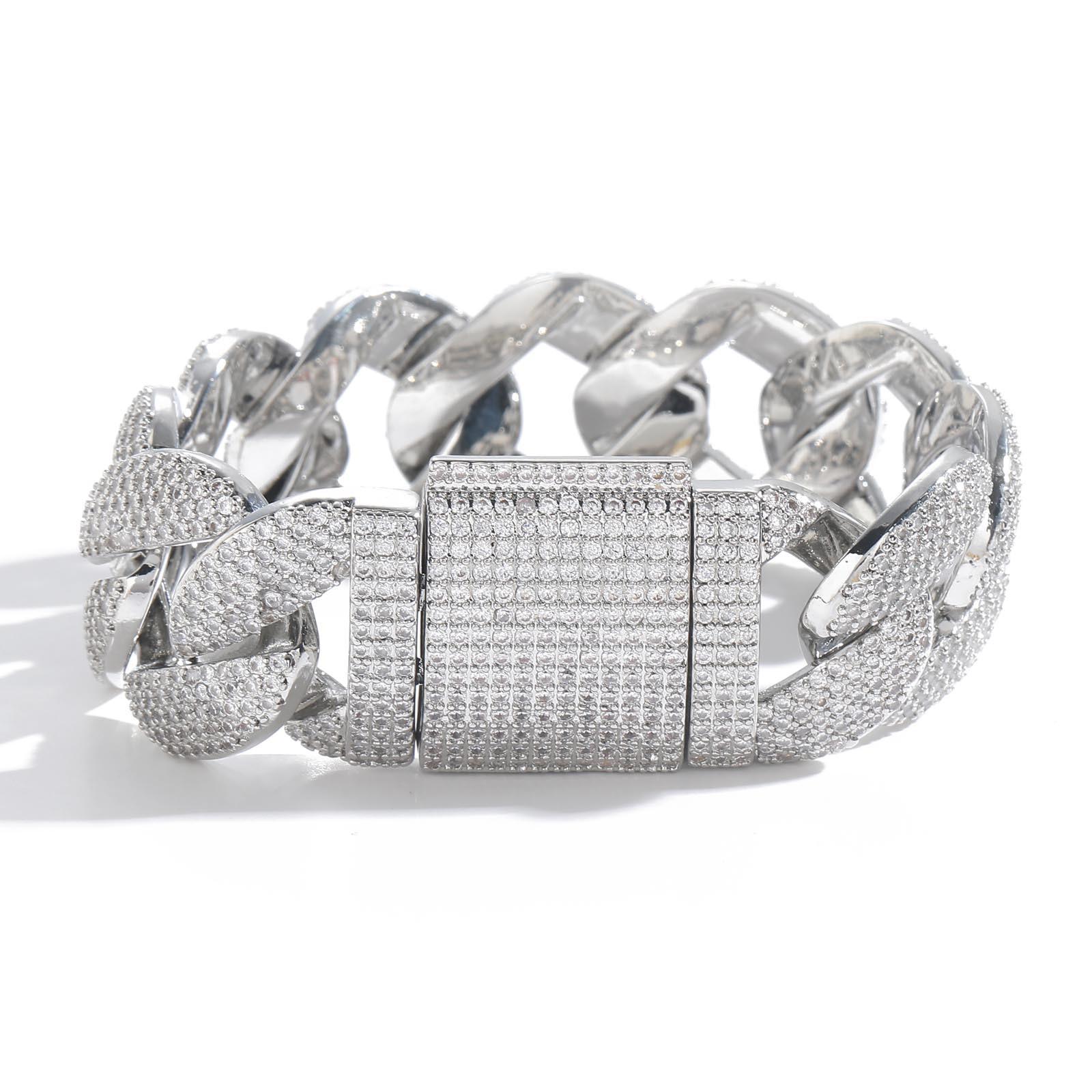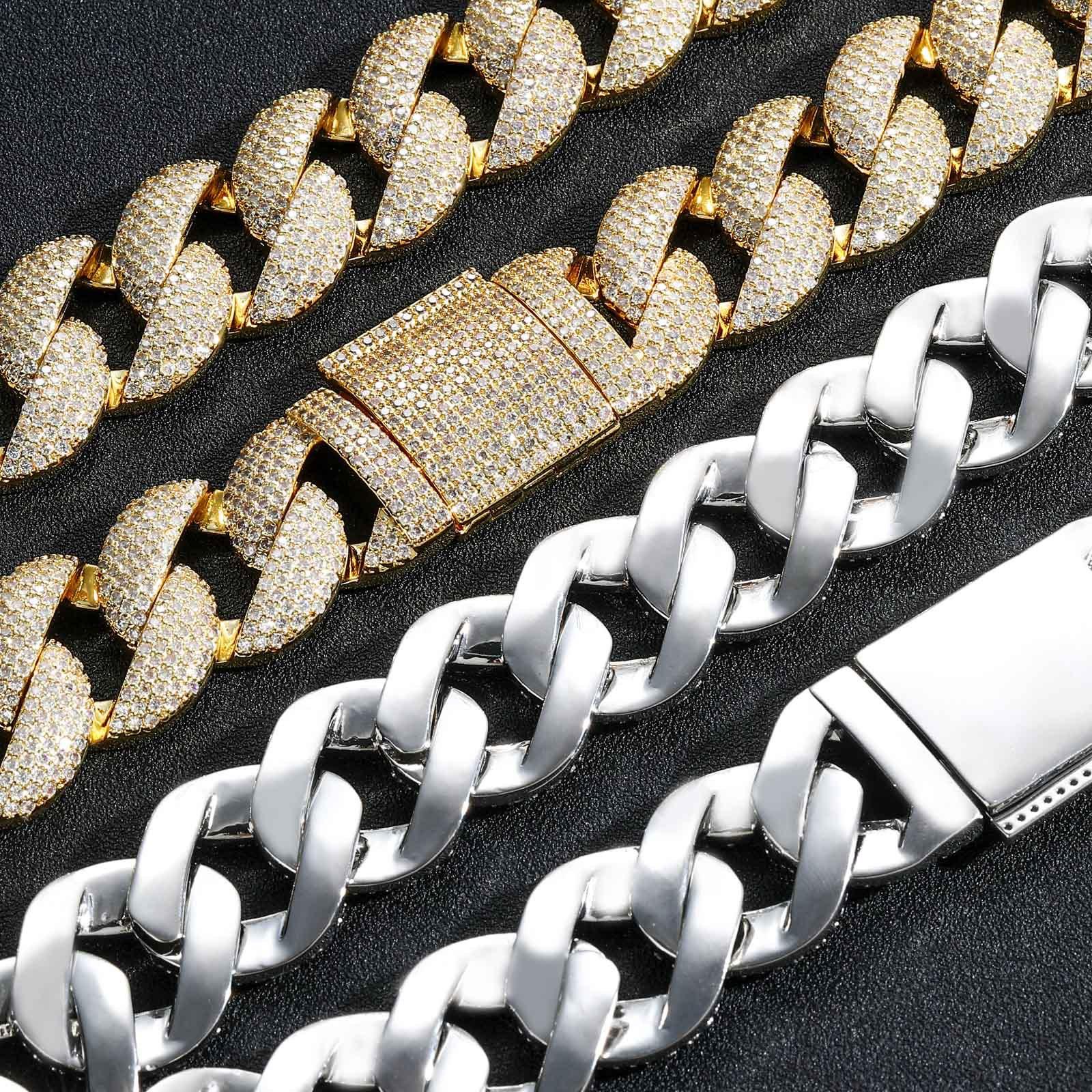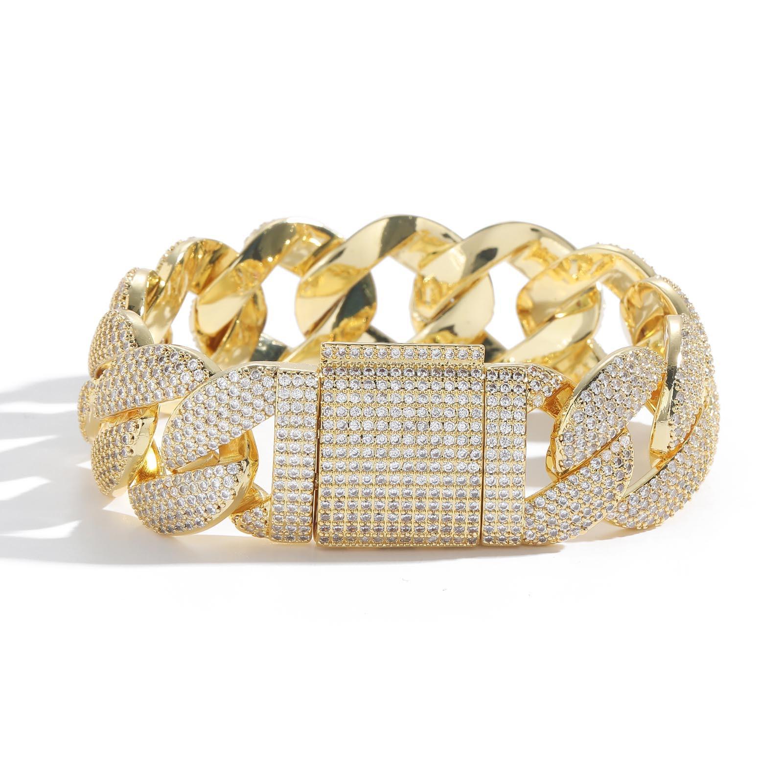 Collar de hip-hop europeo y americano de 20 mm con hebilla de caja y barra de la industria pesada de Miami, cadena cubana llena de circonitas, collar de hip-hop para hombre