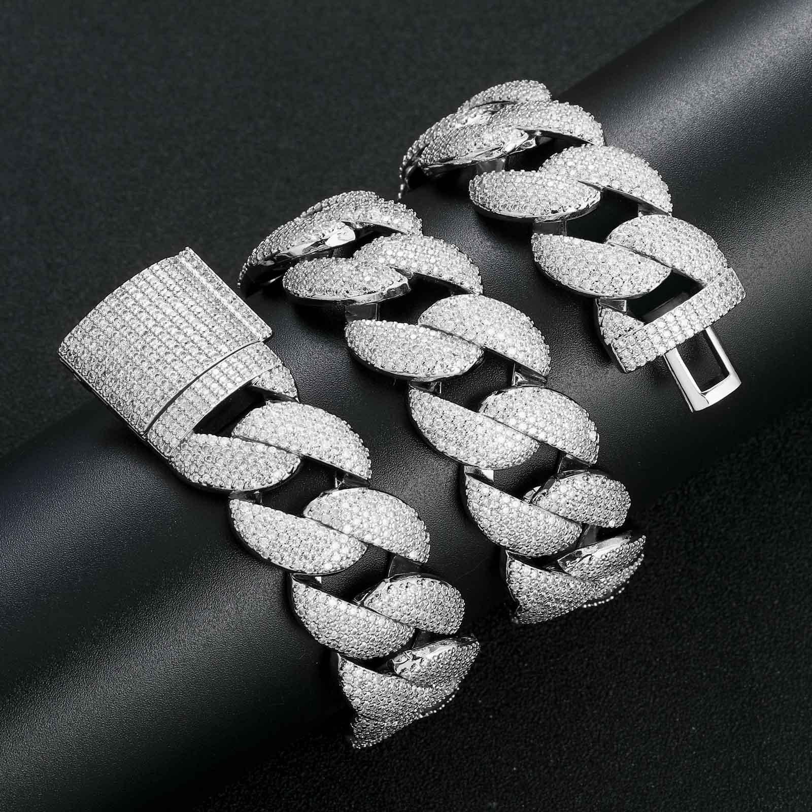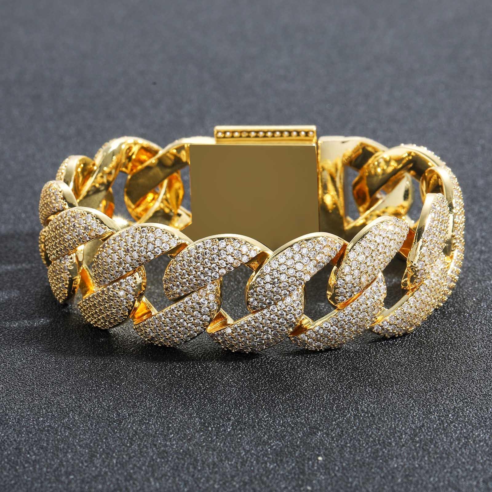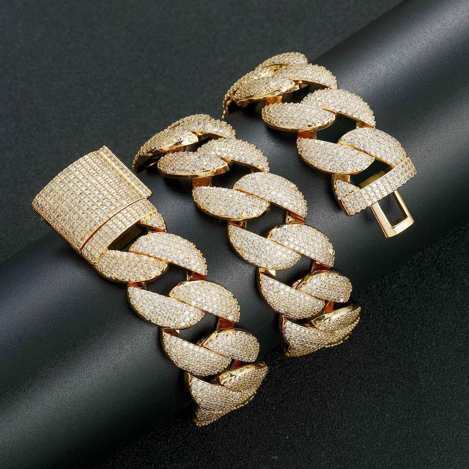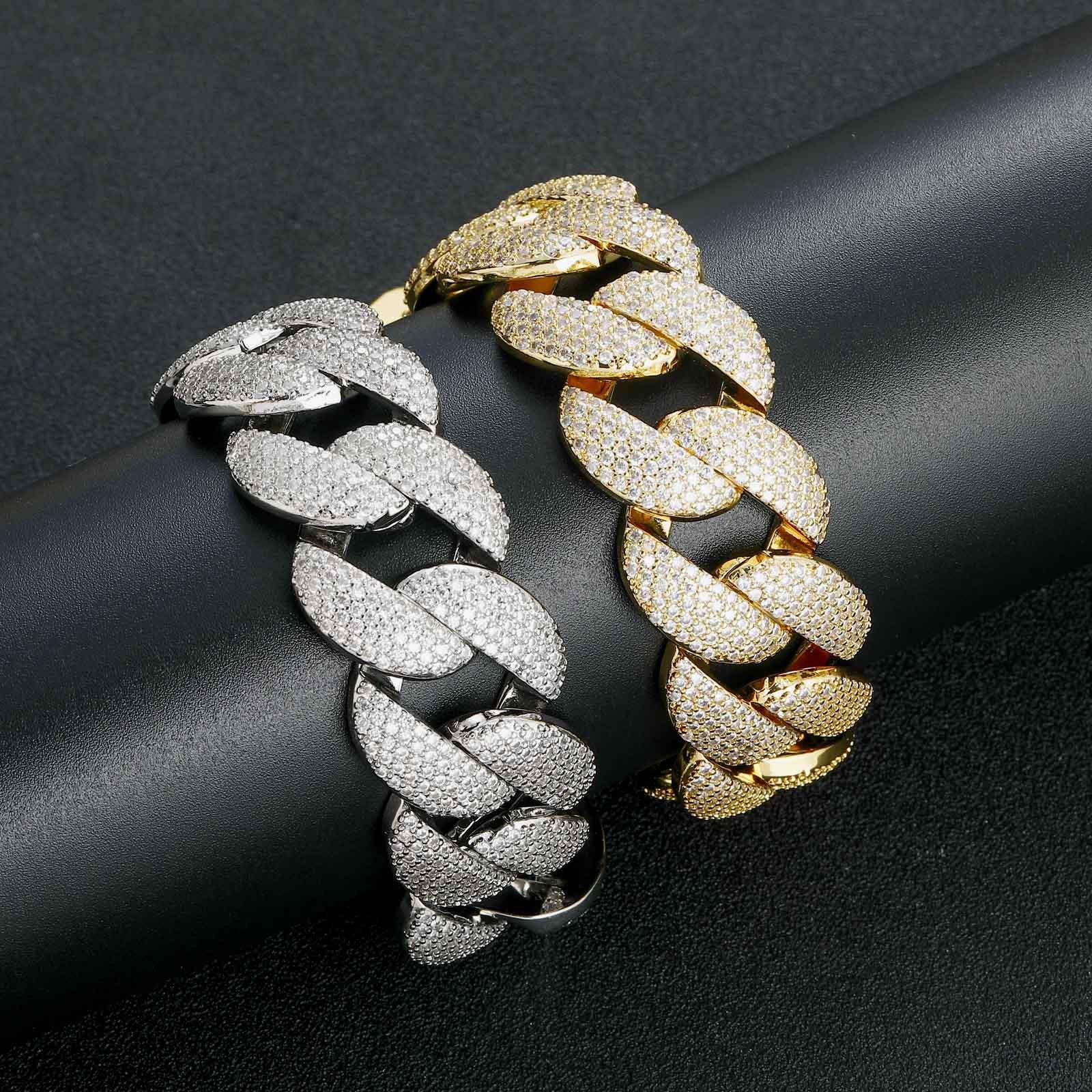 Collar de hip-hop europeo y americano de 20 mm con hebilla de caja y barra de la industria pesada de Miami, cadena cubana llena de circonitas, collar de hip-hop para hombre