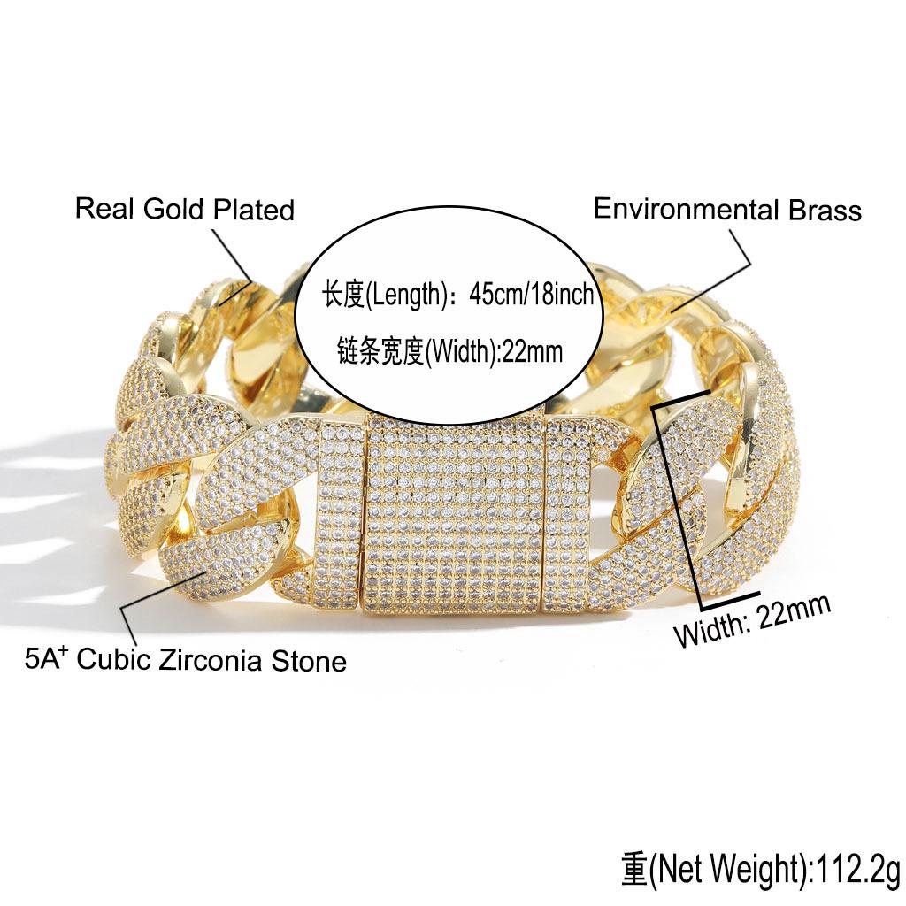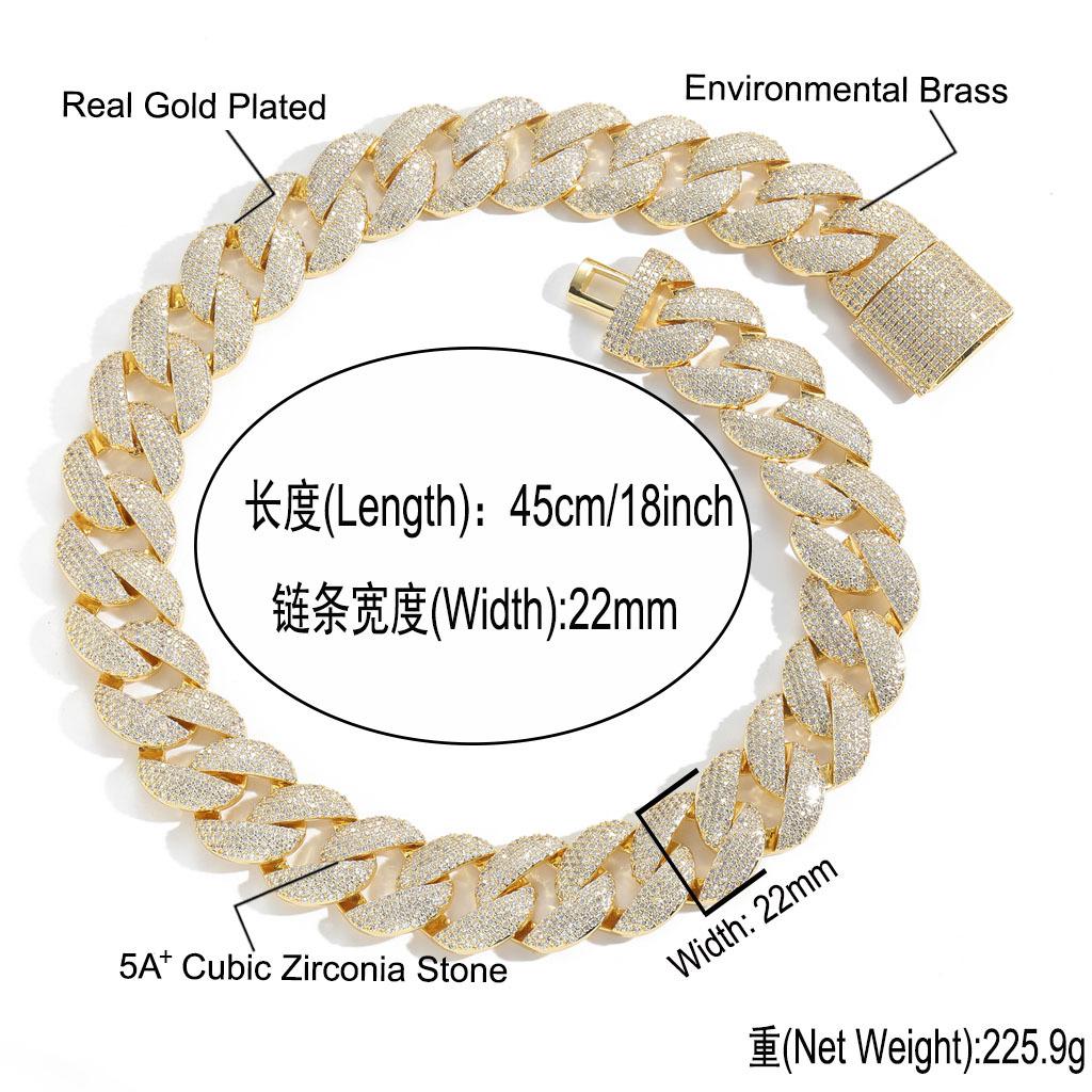Collar de cadena cubana con burbujas de 22 mm de estilo hip-hop europeo y americano, personalidad de marca de moda, collar de joyería de hip-hop para hombres, envío gratuito transfronterizo