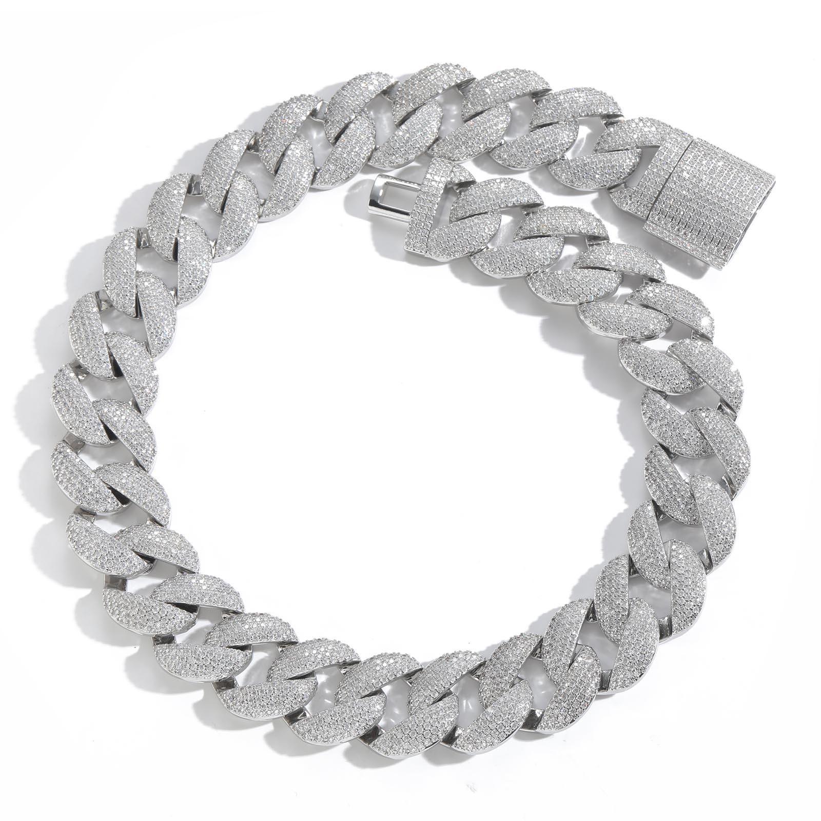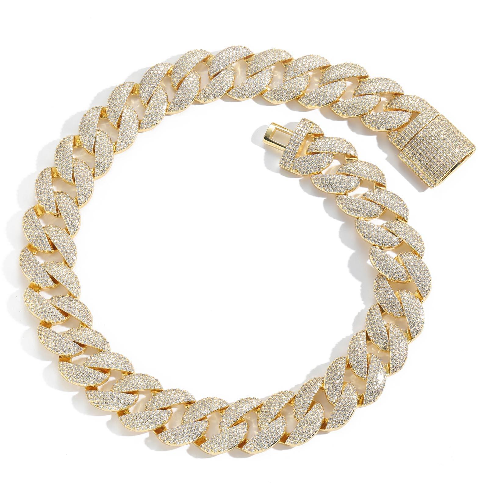 Collar de hip-hop europeo y americano de 20 mm de ancho con cadena cubana en forma de diamante y circonitas cuadradas y redondas dominantes, collar personalizado exagerado para hombre transfronterizo
