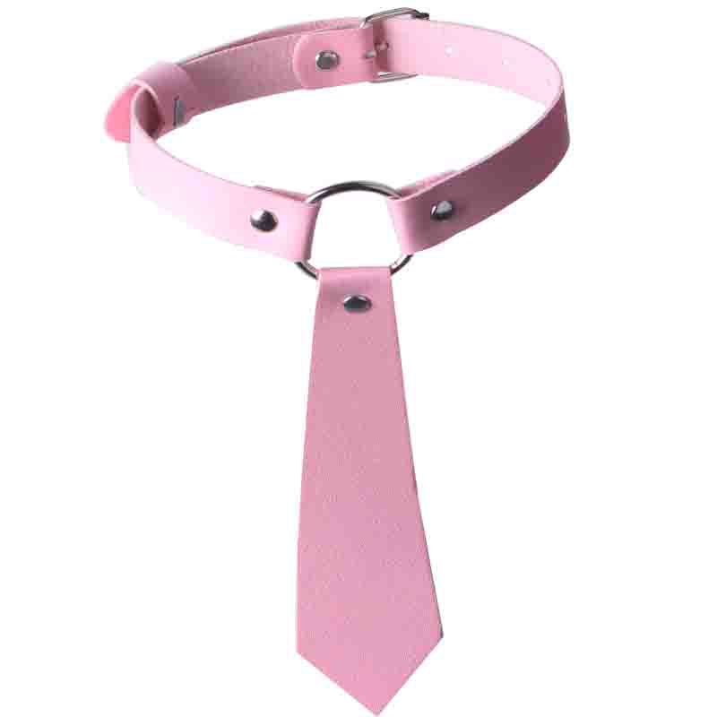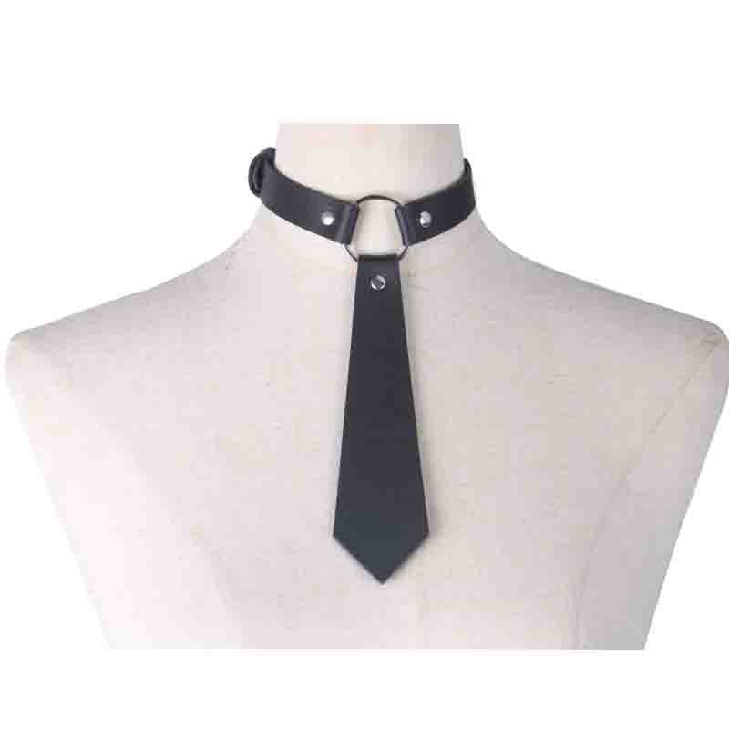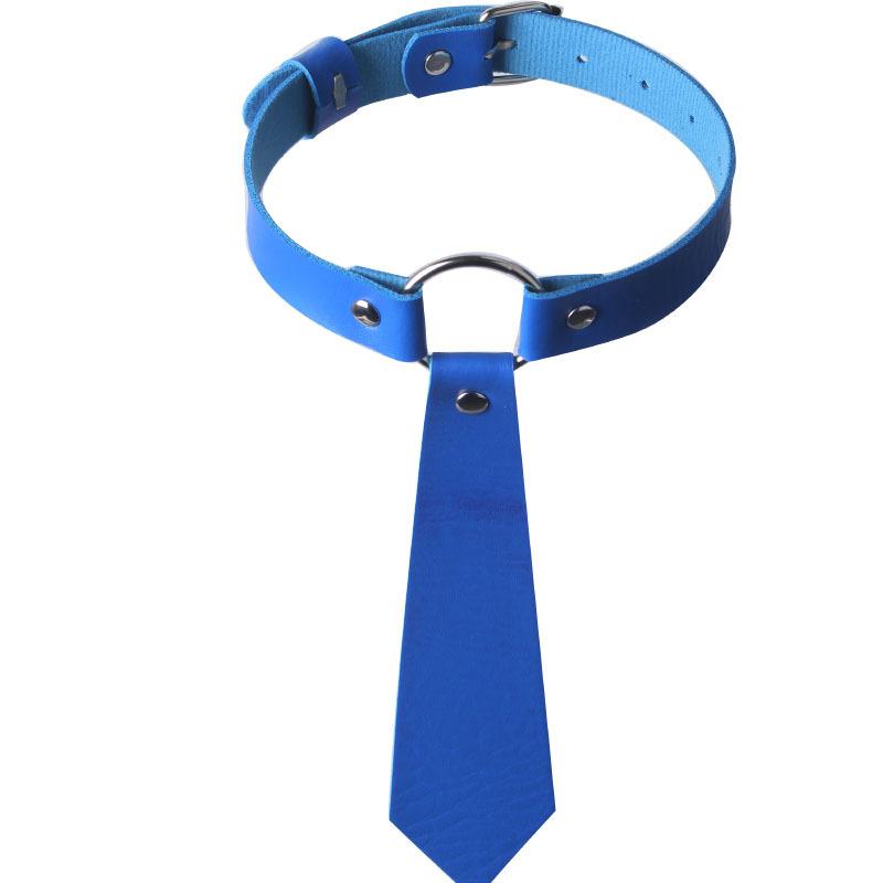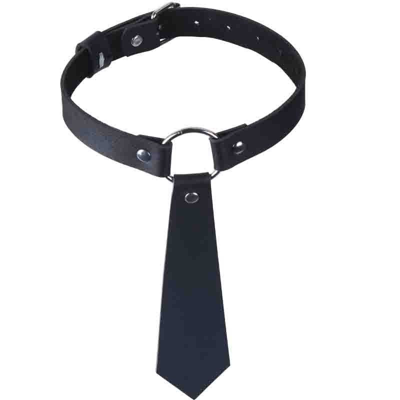 Collar de corbata de cuero sintético personalizado, estilo europeo y americano, con anillo, estilo punk, formal, con correa para el cuello