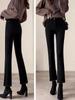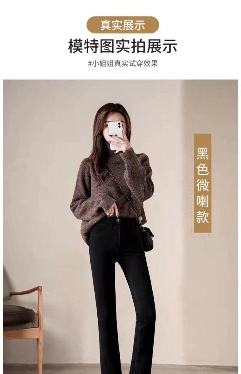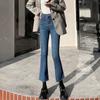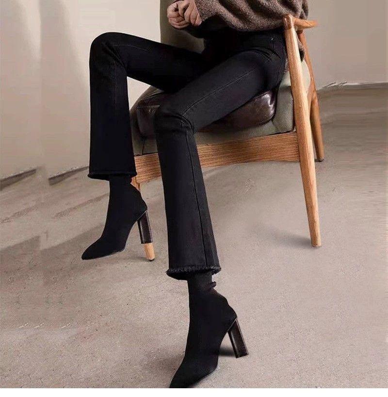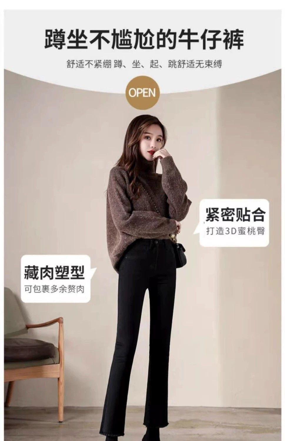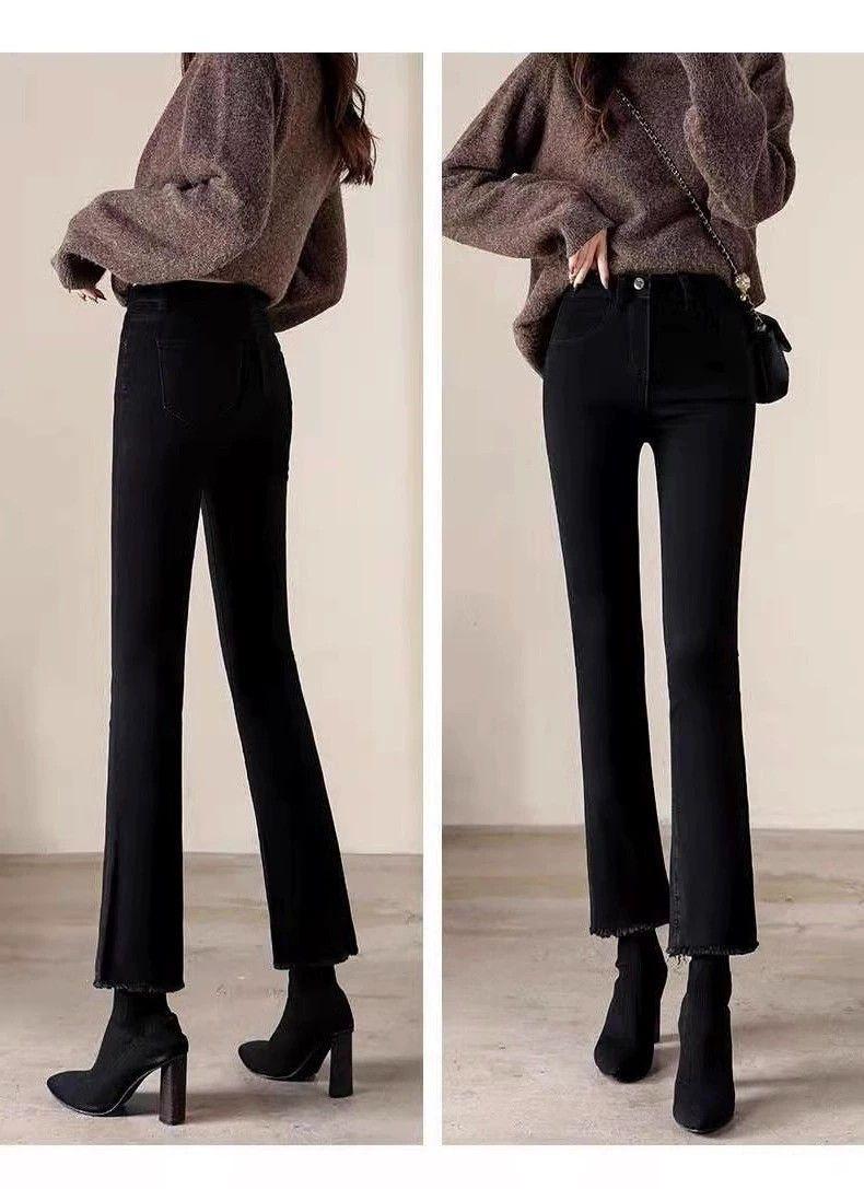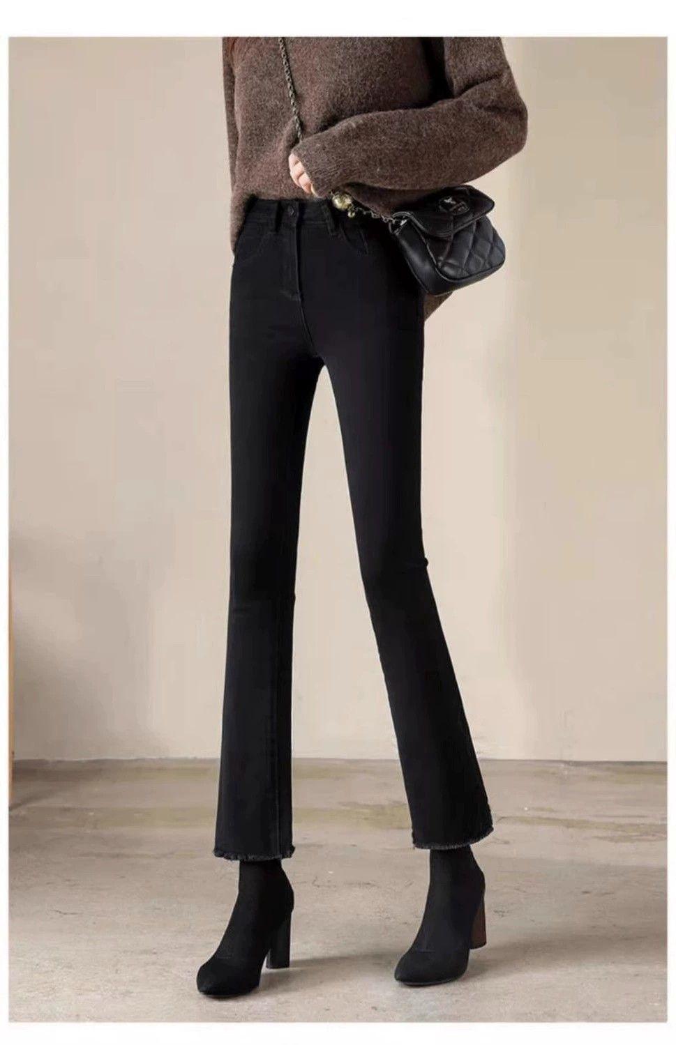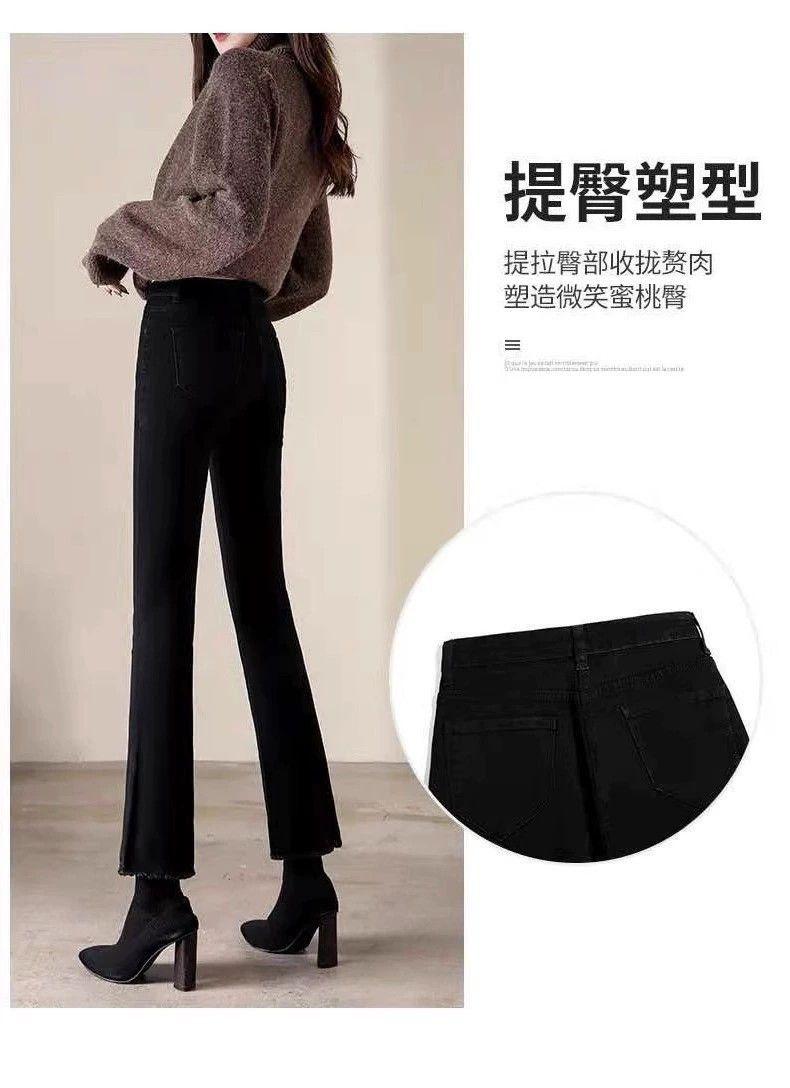 Pantalones vaqueros micro acampanados de primavera 2024 para mujer, ajustados, de cintura alta, elásticos, adelgazantes, deshilachados negros hasta los tobillos.