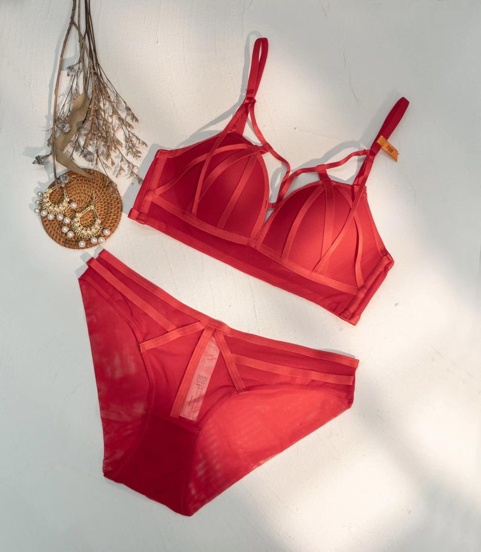 Sujetador transparente ultrafino de encaje sexy sin esponja, ropa interior para mujer, conjunto de sujetador pequeño con pechos grandes