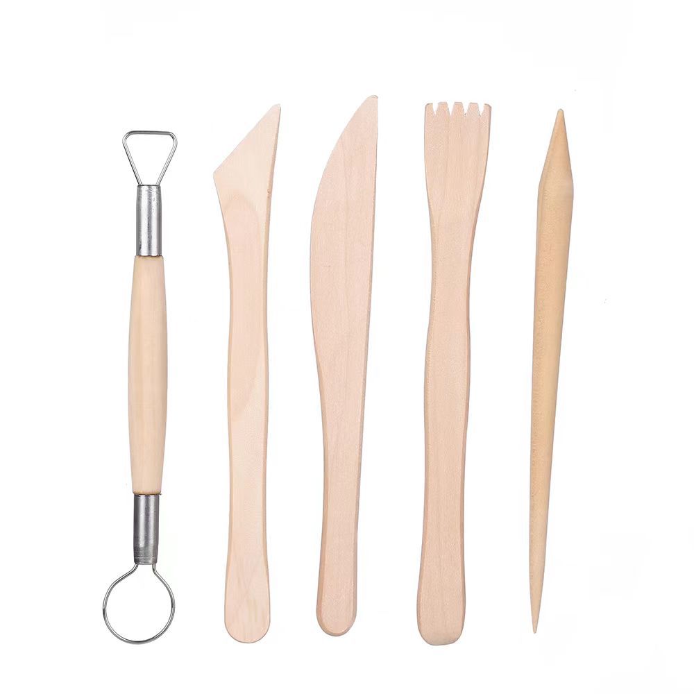 5-piece wooden pottery tool set