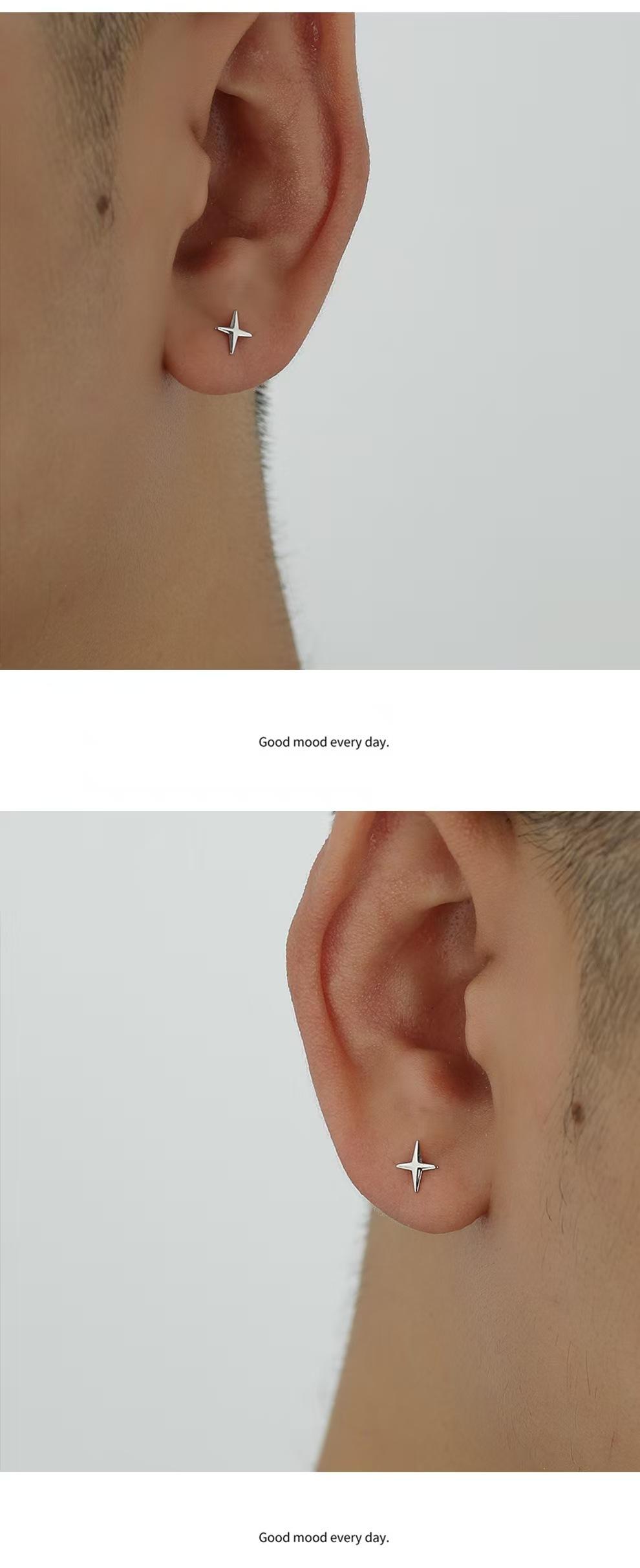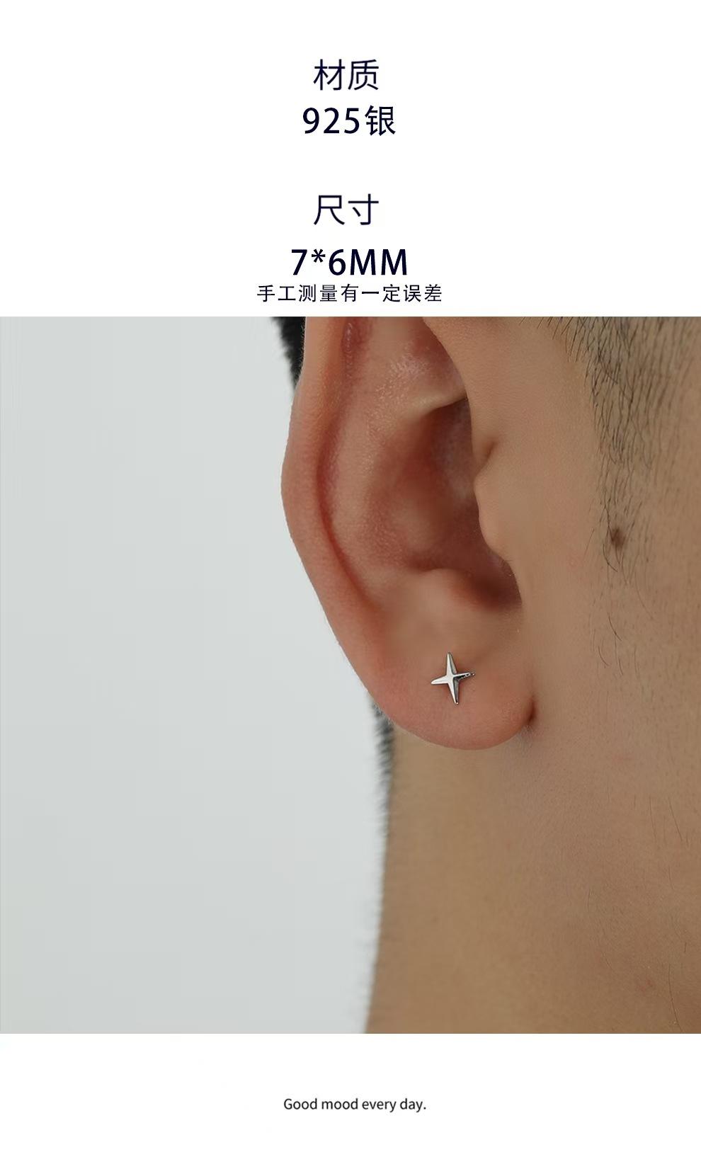 Pendientes de estrella de cuatro esquinas de plata esterlina s925 para mujer, nuevos pendientes de estrella sencillos, estilo frío, ligeros, de lujo, de alta gama.
