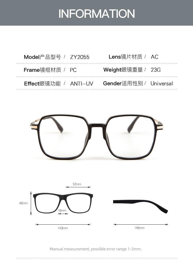Yx2055 black frame (one piece), Yx2055 brown frame (one piece), Yx2055 pink frame (one piece), Yx2055 transpar...