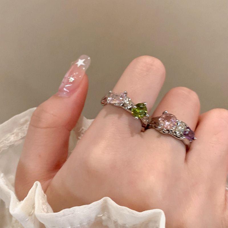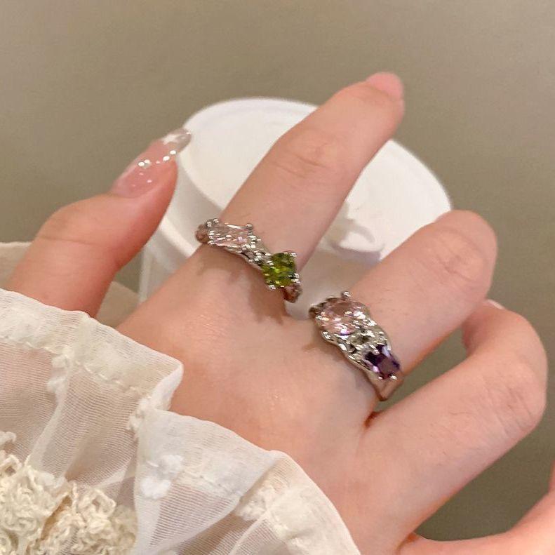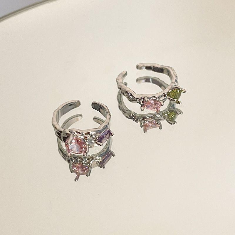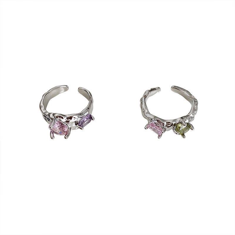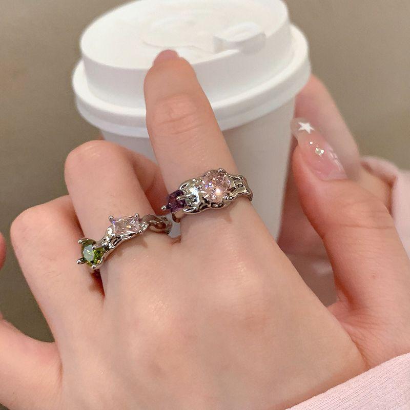 Anillo Abierto de Zirconia de Color Dopamina Diseño Nicho Femenino Lujo Ligero Alto Sentido Moda Personalizado Anillo para Dedo Índice
