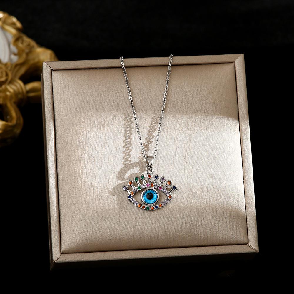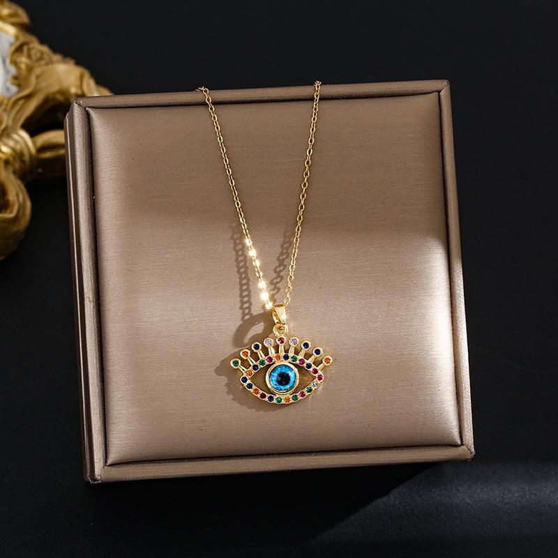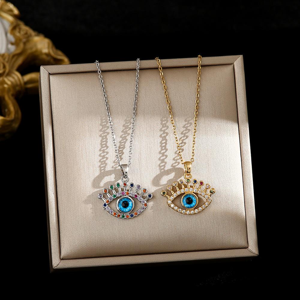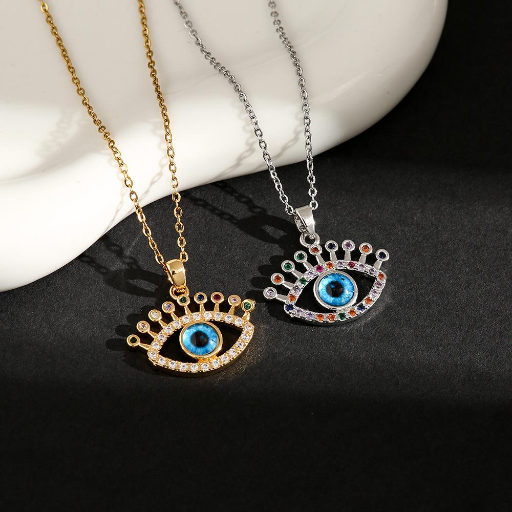 Collar ojo de diablo transfronterizo europeo y americano para mujer, circón, gota de aceite, cobre chapado en oro, bohemio, collar ojo turco al por mayor