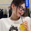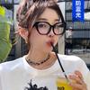 Caja armazón negro cara lisa artefacto gafas ojo de gato textura avanzada ins se puede equipar con grados armazón para gafas de miopía rostro femenino luce pequeño