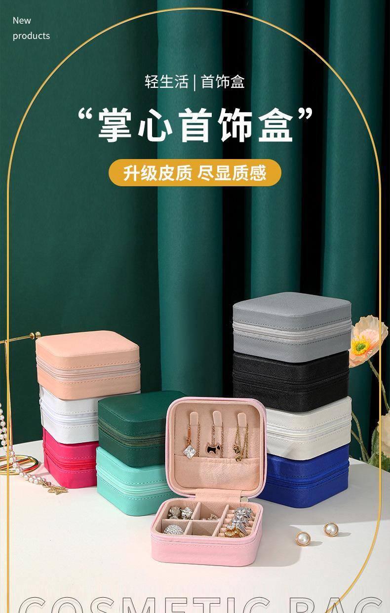 Mini joyero cuadrado portátil al por mayor, caja de almacenamiento de collares, caja de almacenamiento de joyas simple, caja de joyería de cuero