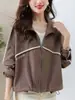 Abrigo Corto para Mujer 2024 Primavera y Otoño Nueva Moda Versátil Pequeño Cuello de Madre Cárdigan con Cremallera Top