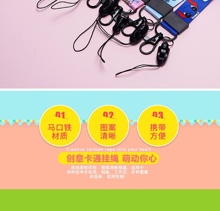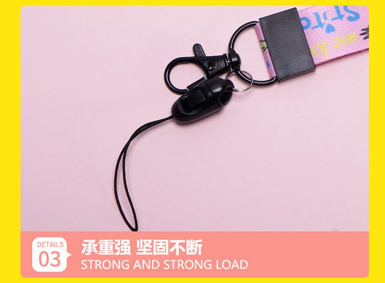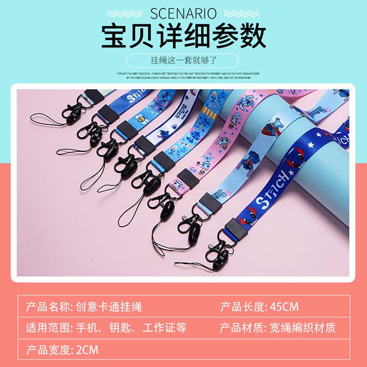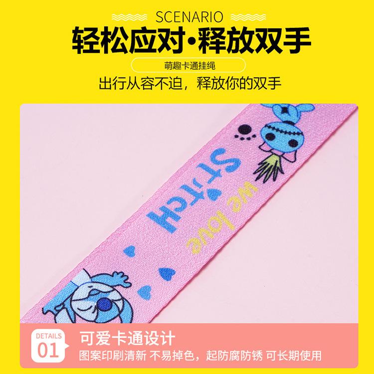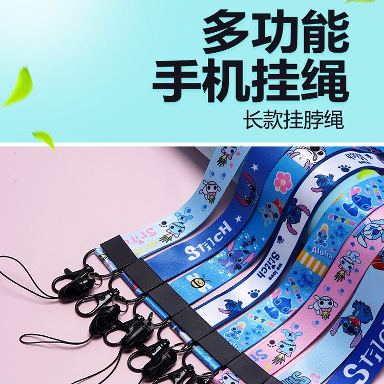 Cordón de tela para teléfono móvil de dibujos animados lindo, para tarjeta de autobús, tarjeta de comida, funda anti-pérdida, memoria USB, cuerda larga, estudiante, cabestro, cuerda ancha, bandolera