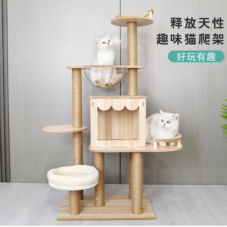 Estante de escalada de madera para gatos, cápsula espacial grande para gatos, nido para gatos, árbol para gatos, estante integrado para gatos, tablero rascador para gatos, estante para gatos, suministros para mascotas