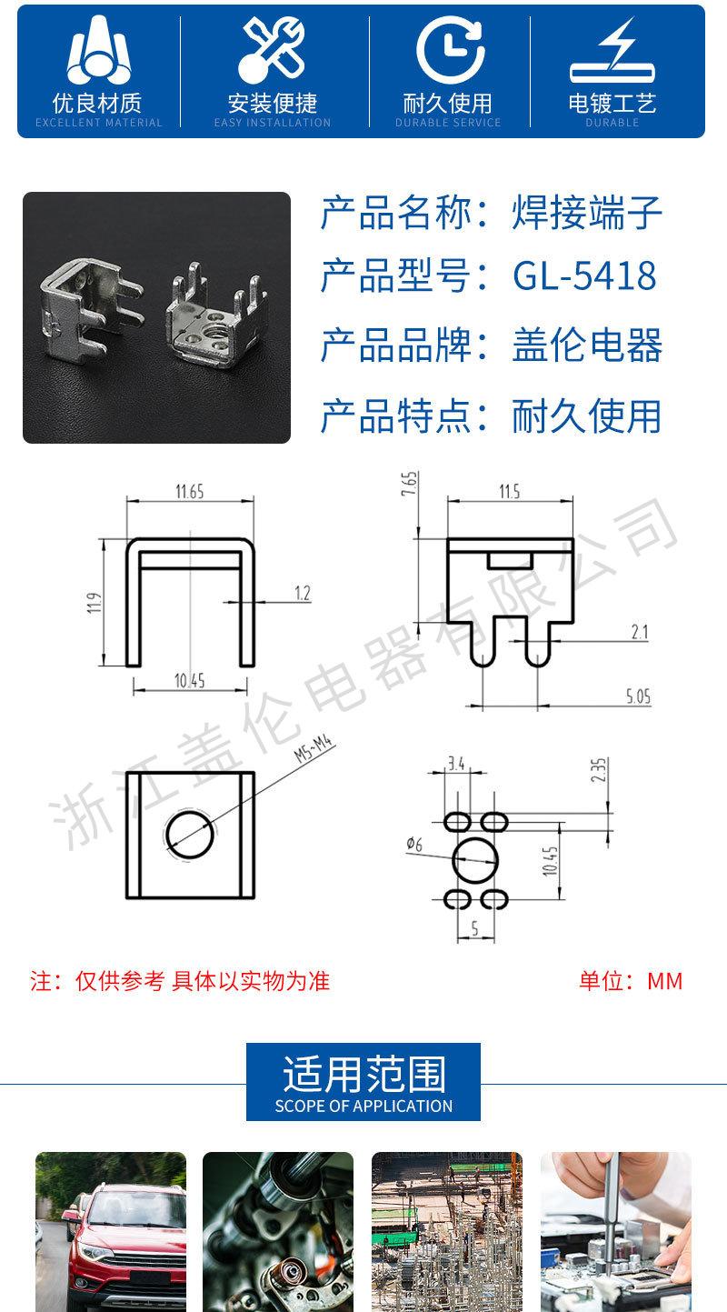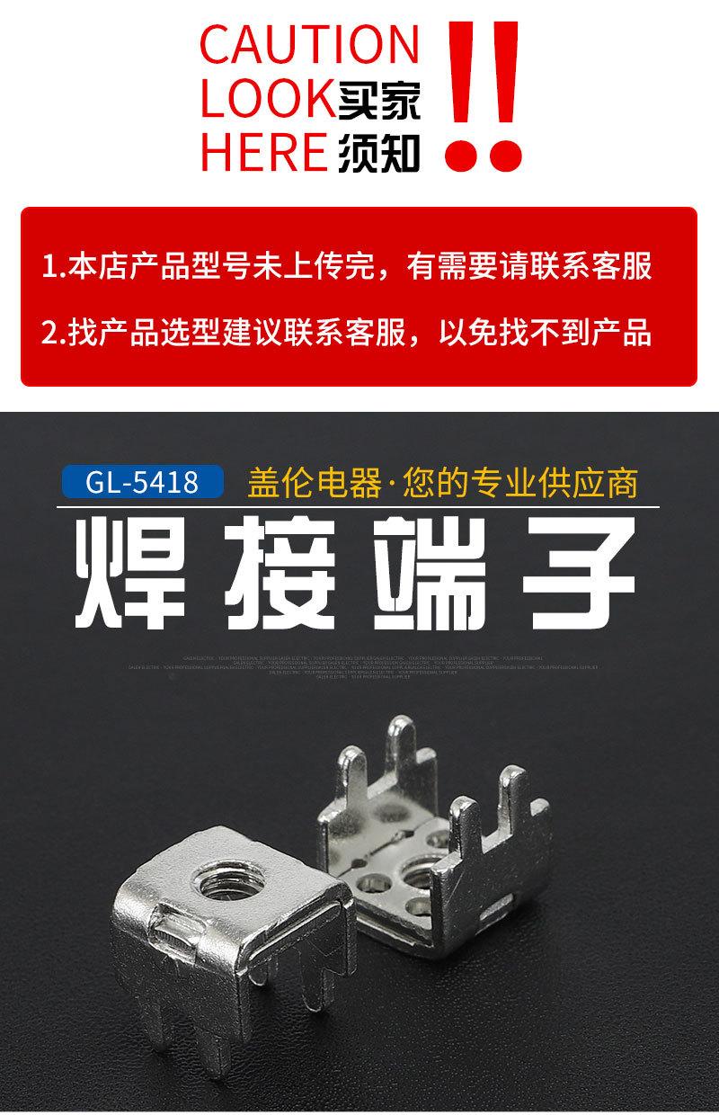 Los fabricantes suministran terminales de soldadura de PCB de cobre de alta corriente GL-5418, terminales de soldadura de placa de circuito engrosados.