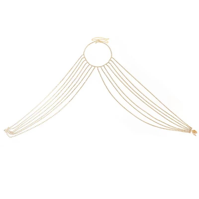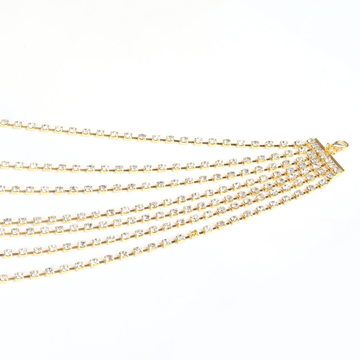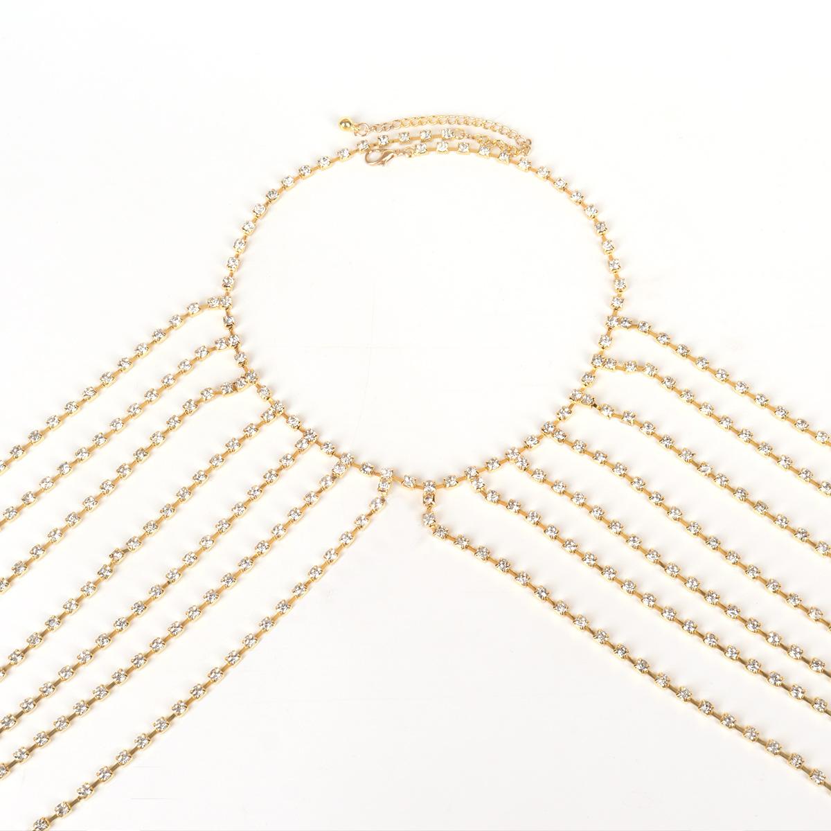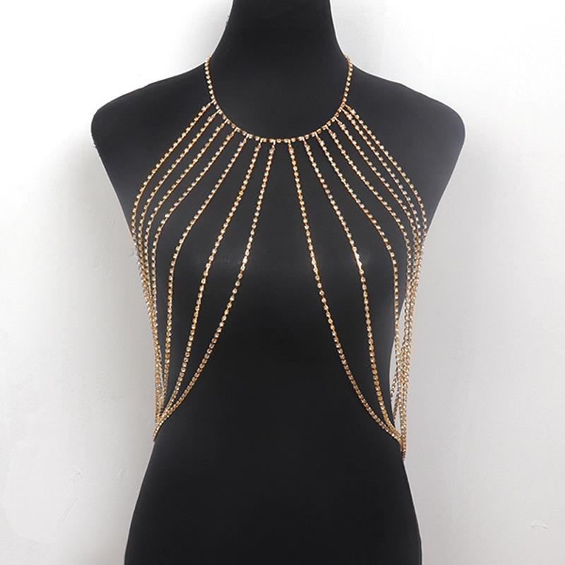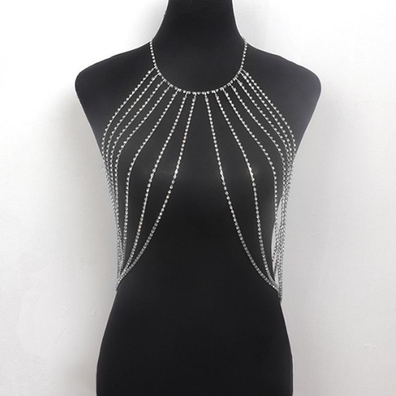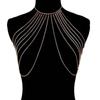 Cadena de diamantes de imitación multicapa de moda transfronteriza europea y americana, divertida cadena para el pecho, cadena sexy para bikini, cadena para el cuerpo para mujer