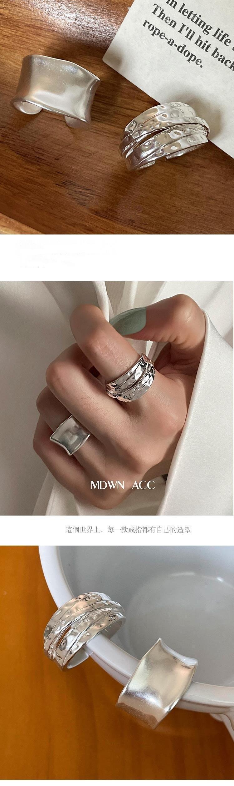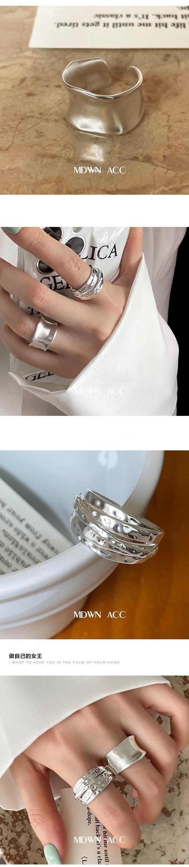 Anillo de moda de borde ancho con líneas geométricas enrolladas, personalidad femenina, temperamento creativo, plata S925 chapada, anillo abierto para el dedo índice