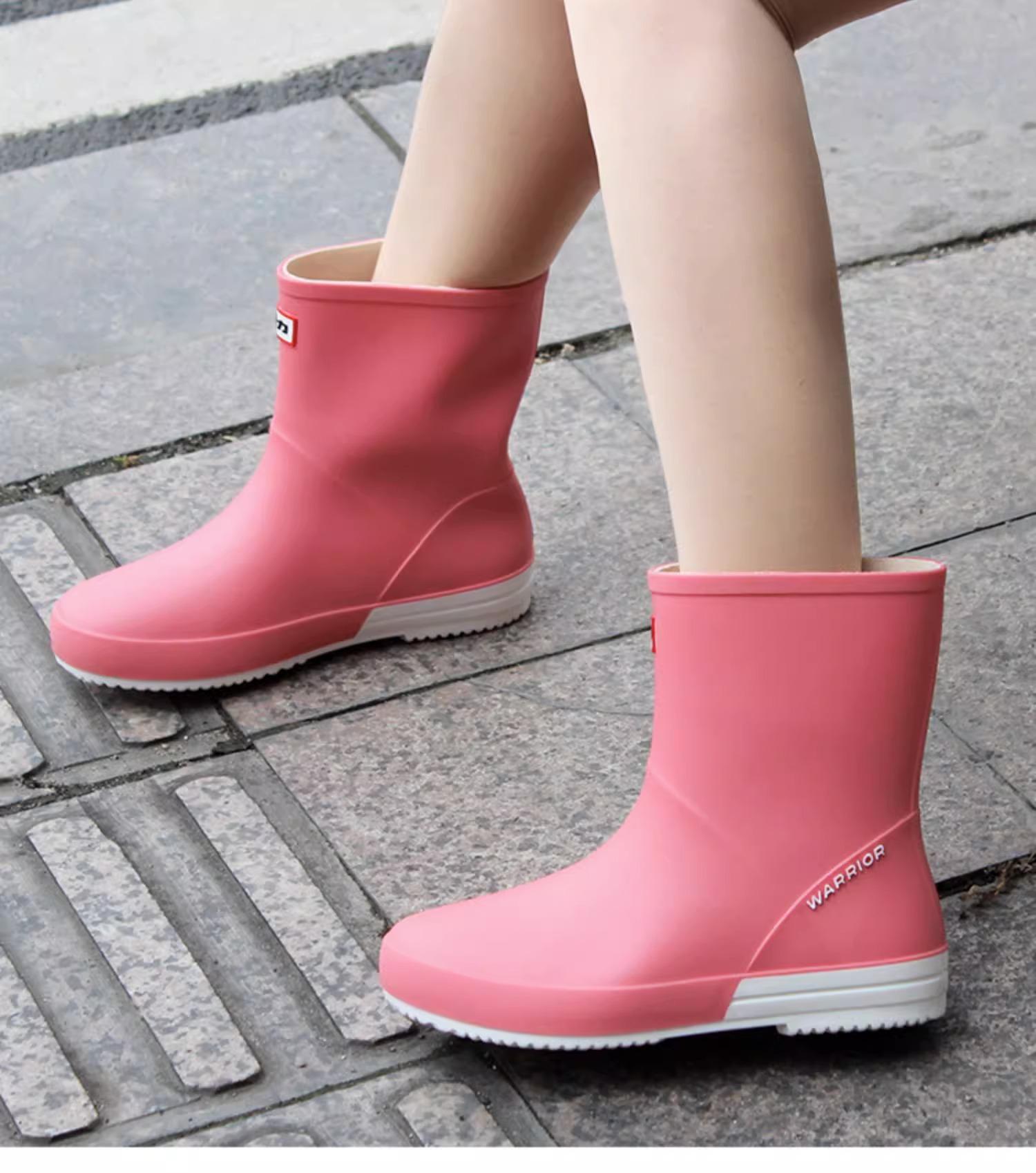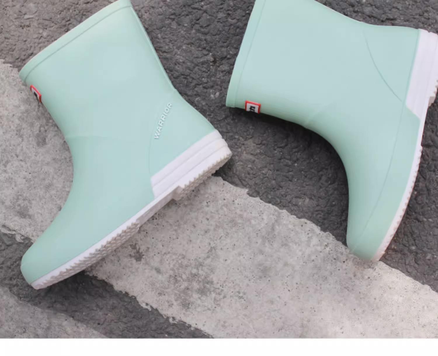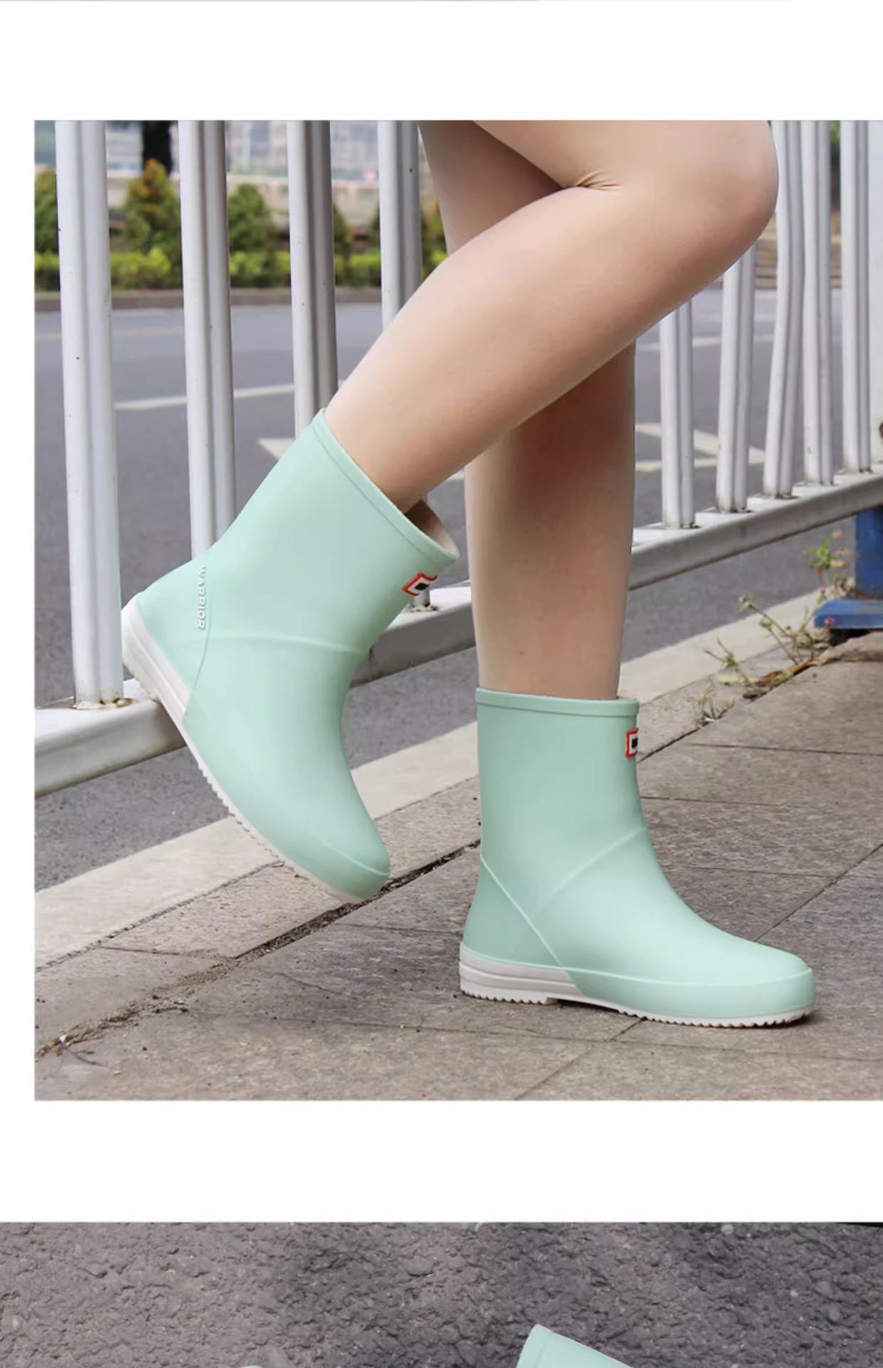Botas de lluvia Huili 013 para mujer, de moda, para exteriores, botas de agua de tubo corto, antideslizantes, impermeables, de goma, con suela suave, resistentes al desgaste, zapatos de agua