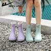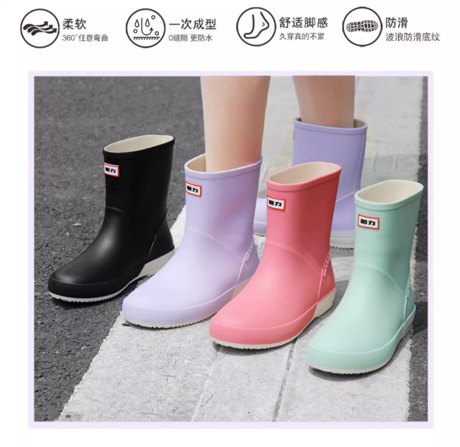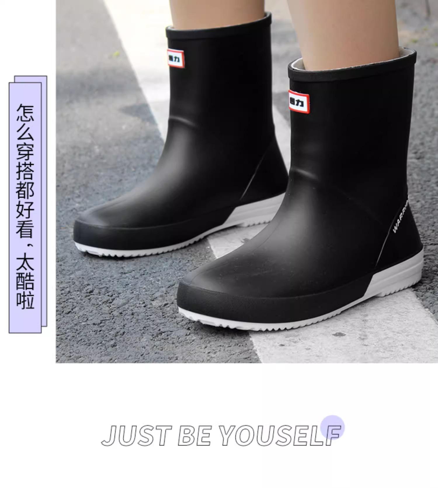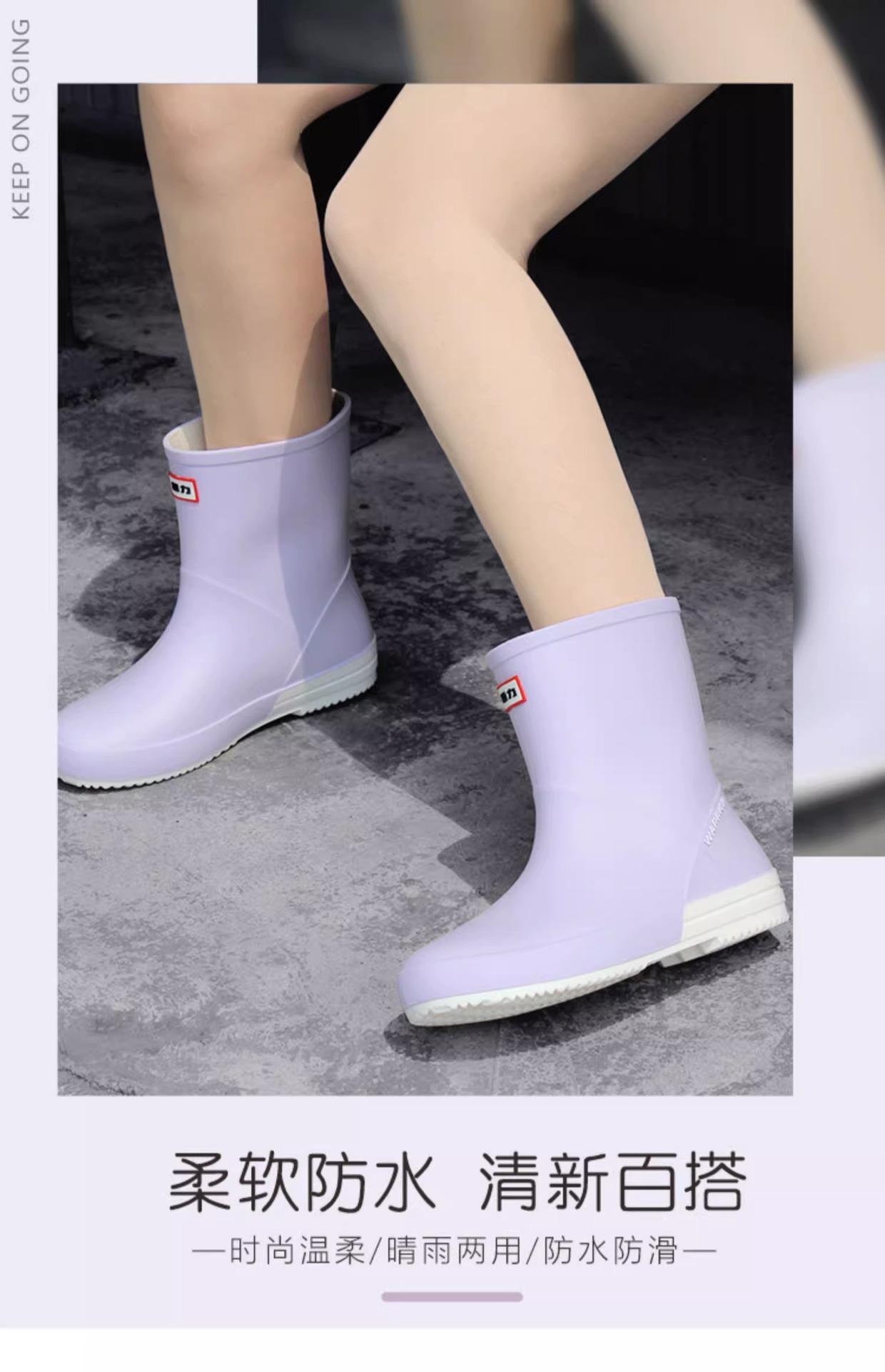 Botas de lluvia Huili 013 para mujer, de moda, para exteriores, botas de agua de tubo corto, antideslizantes, impermeables, de goma, con suela suave, resistentes al desgaste, zapatos de agua