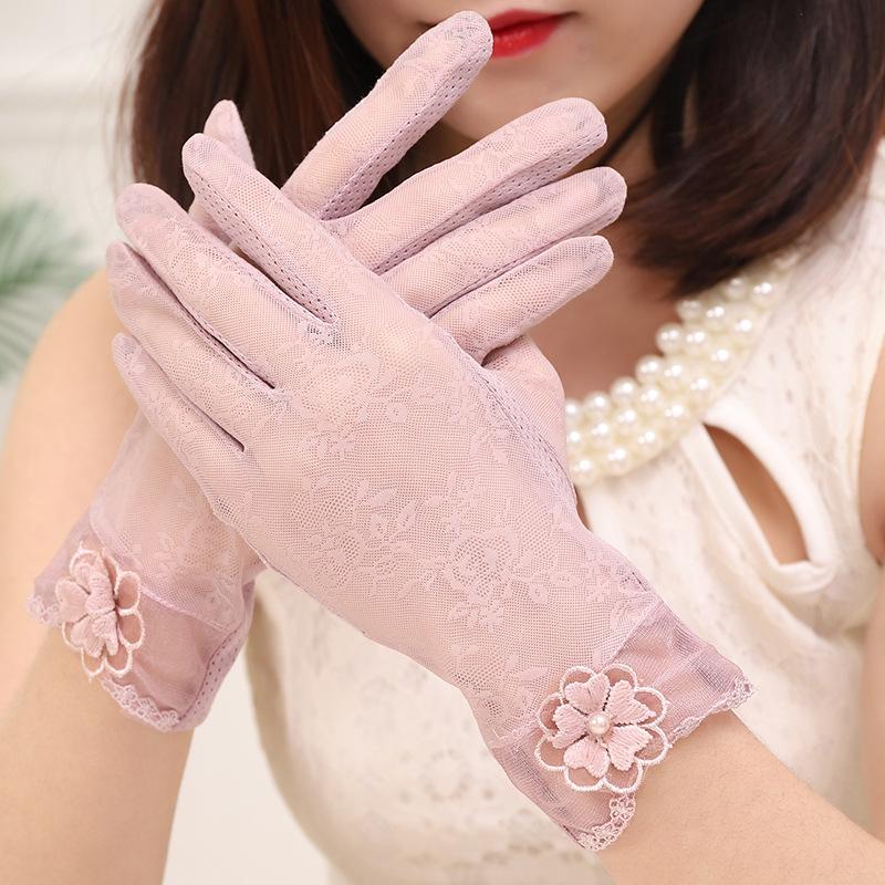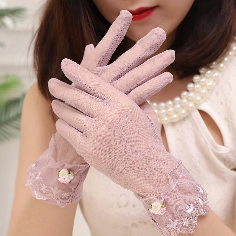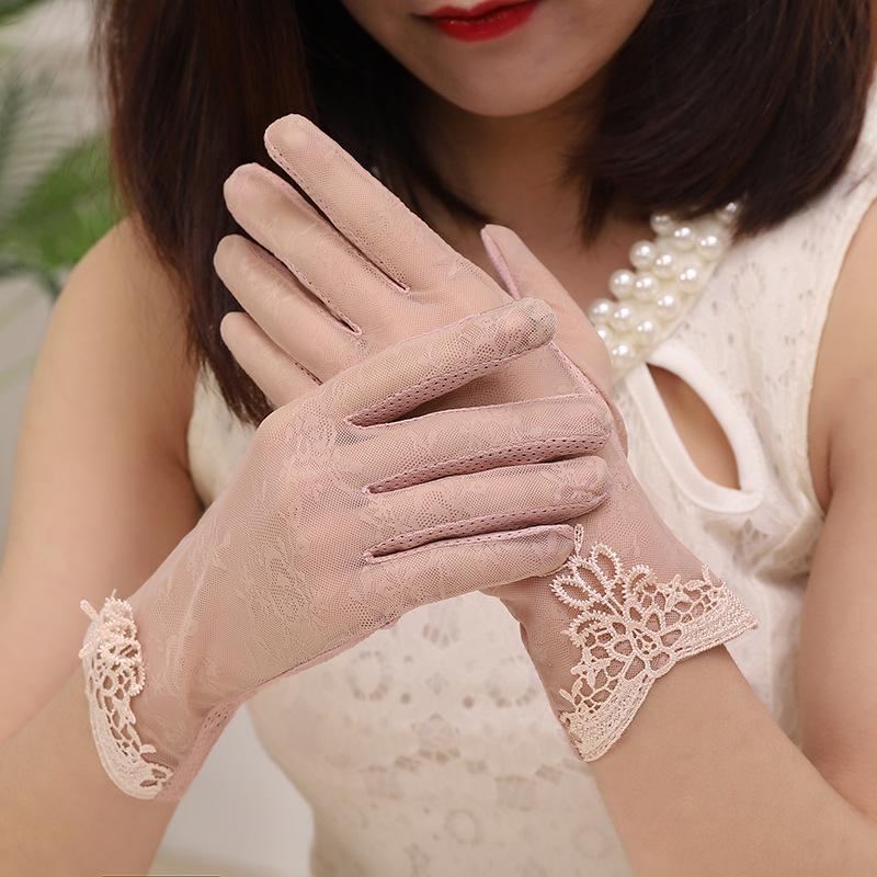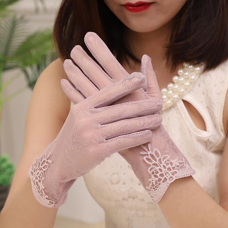 Guantes de protección solar para mujer, cortos de verano, delgados, para exteriores, ciclismo, conducción, encaje, largos antideslizantes con pantalla táctil, guantes de seda de hielo al por mayor