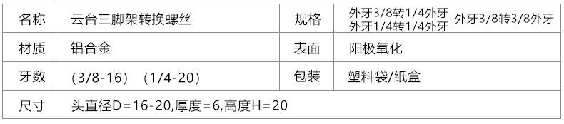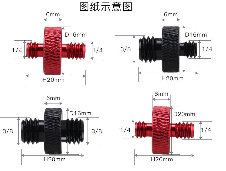 Adaptador de trípode de aleación de aluminio, tornillo de conversión de 3/8 a 1/4, soporte para cámara, perno reductor de dientes de doble cabeza