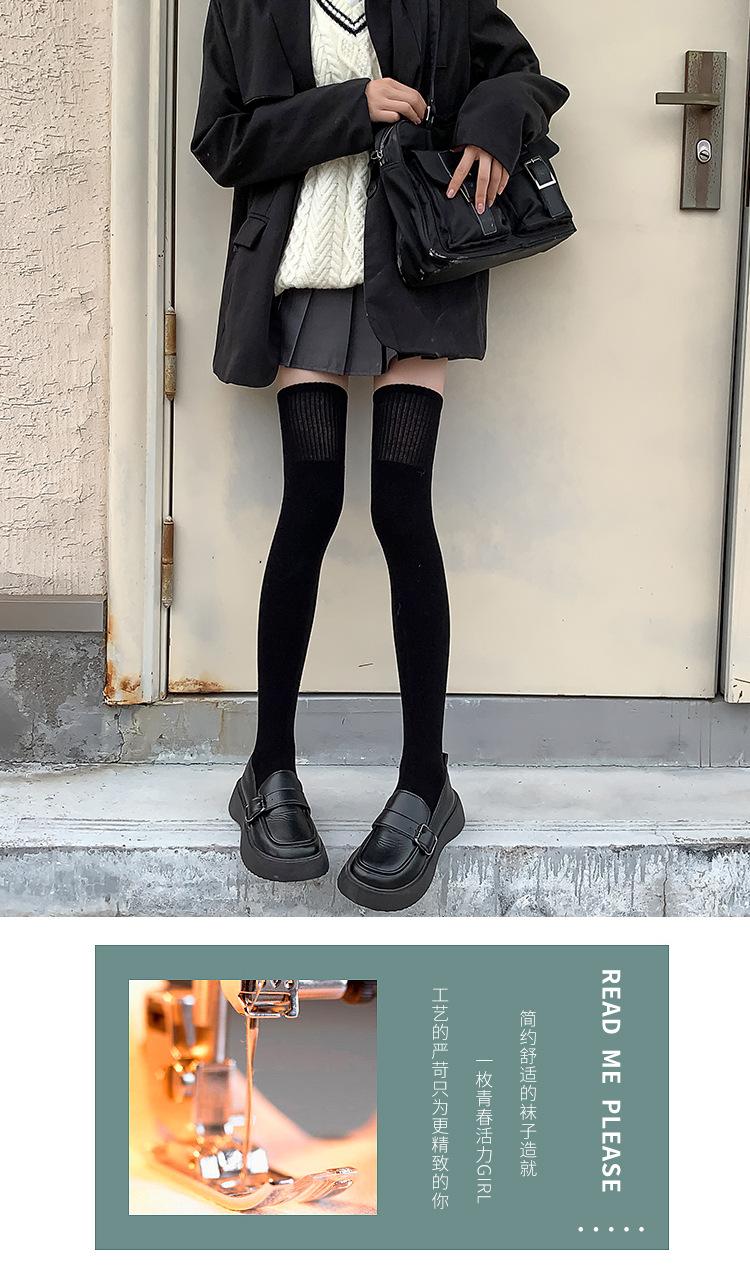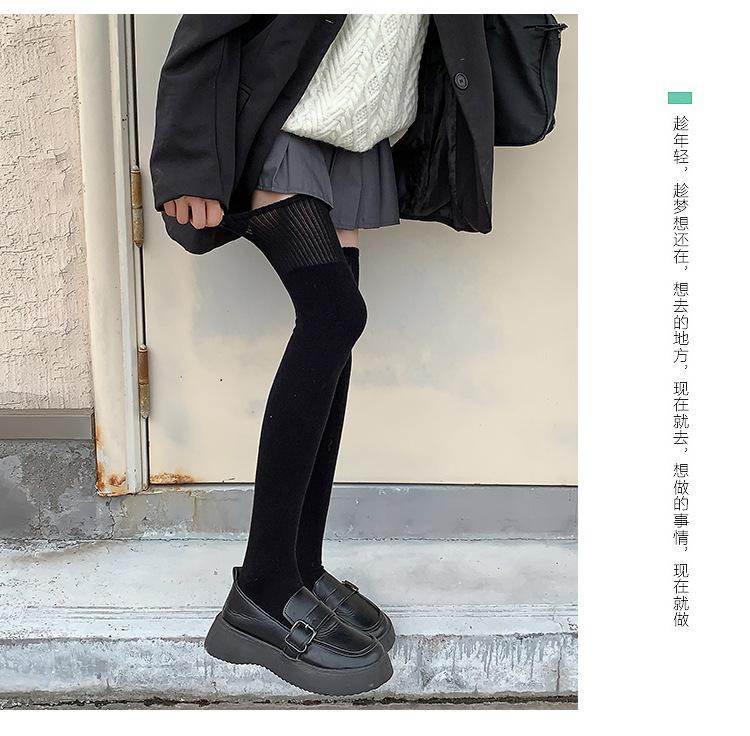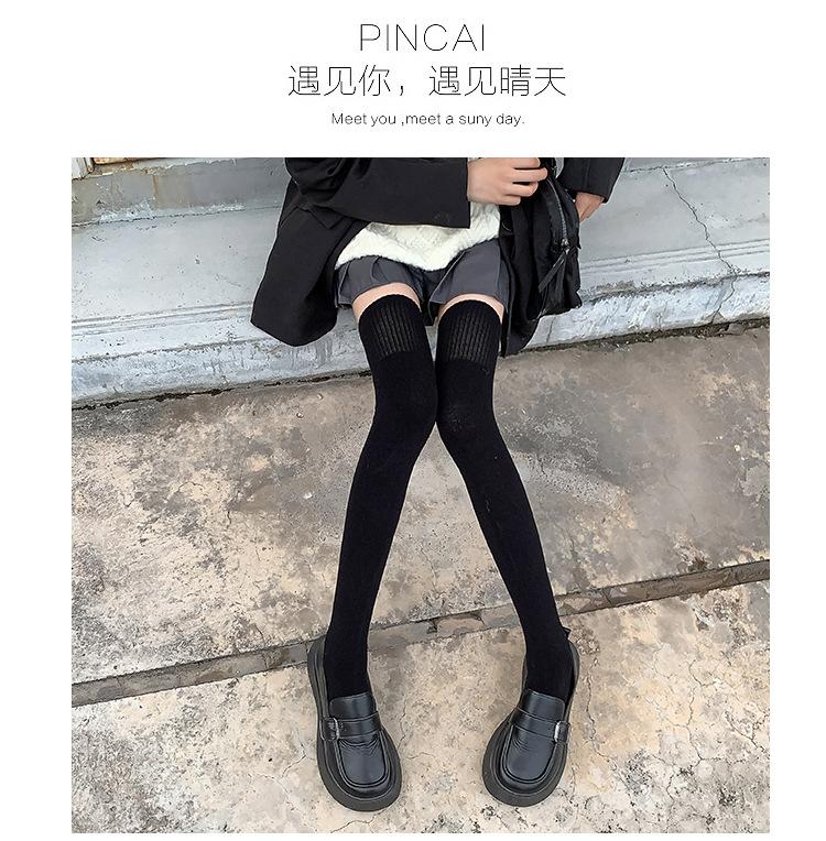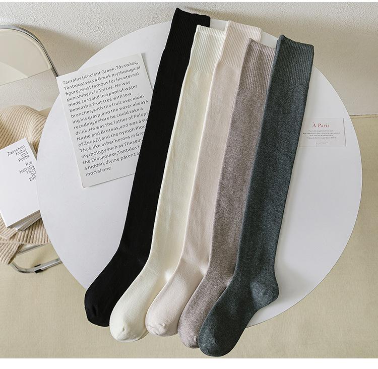 Calcetines por encima de la rodilla, medias de mujer de otoño e invierno, gruesas, forradas de vellón, cálidas, de color sólido, medias japonesas, medias altas, calcetines con forma de pantorrilla.