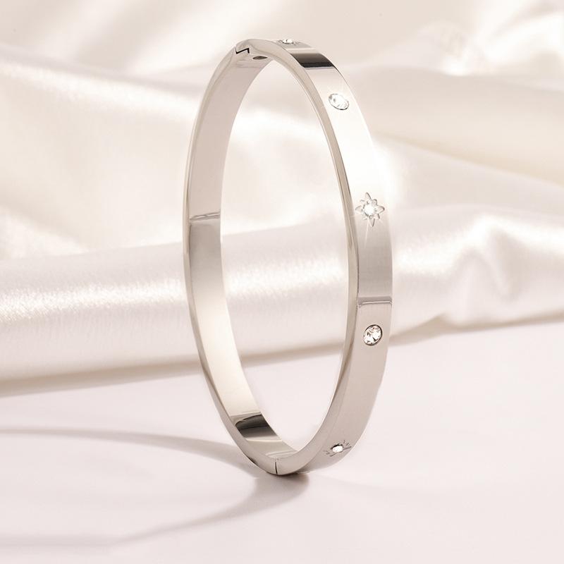 Pulsera de Acero Titanio Transfronteriza Europea y Americana para Mujer de Alta Gama Joyería de Oro y Plata Acero Inoxidable Pulsera de Diamantes Hebilla Pulsera Abierta