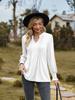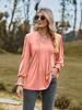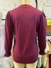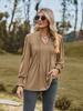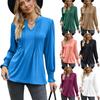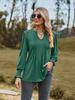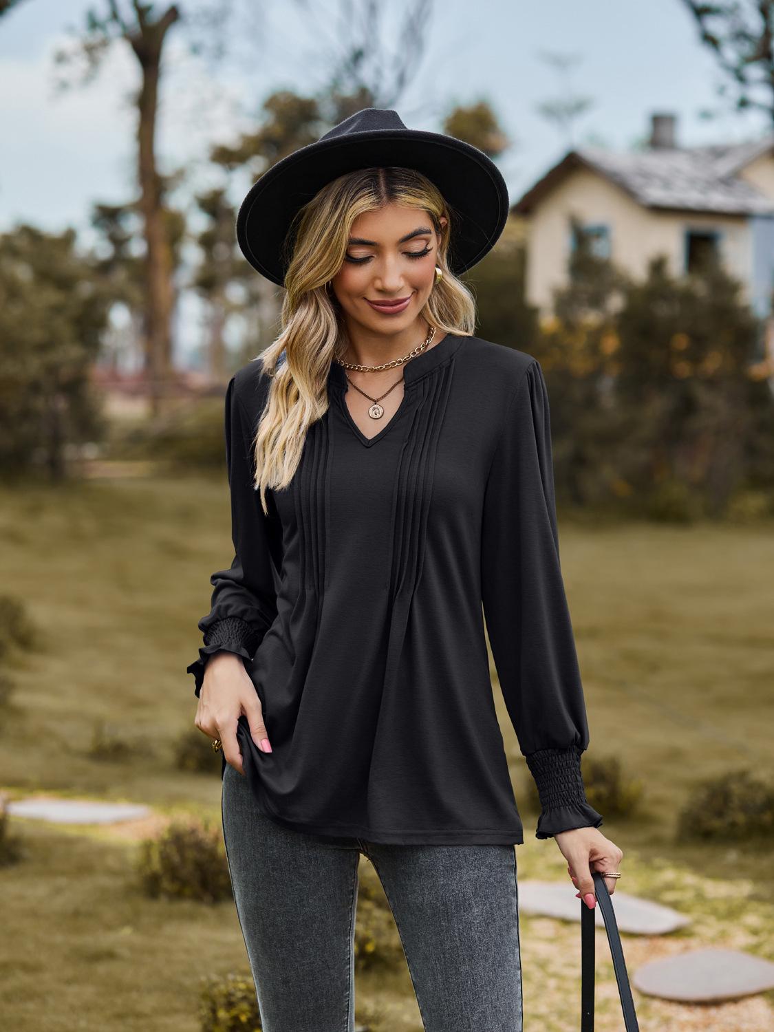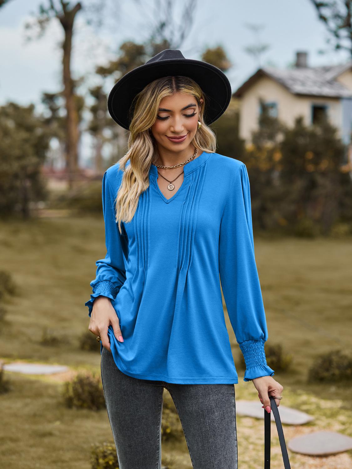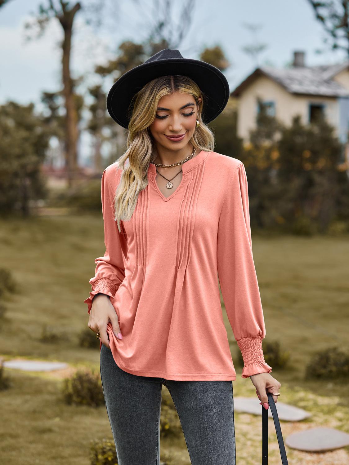 2023 Amazon Otoño Nueva Camiseta Transfronteriza para Mujer Color Sólido Rayada Manga Abullonada Cuello en V Manga Larga Top