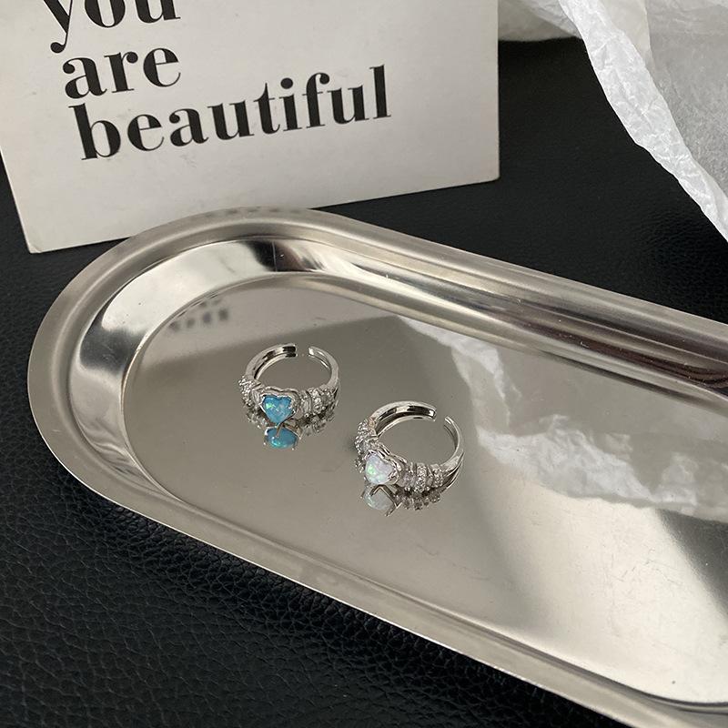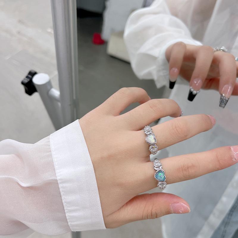 Anillo de circón con forma de amor retro francés para mujer, exquisito nicho en estilo frío, moda de alta gama, anillo para dedo índice con sentido