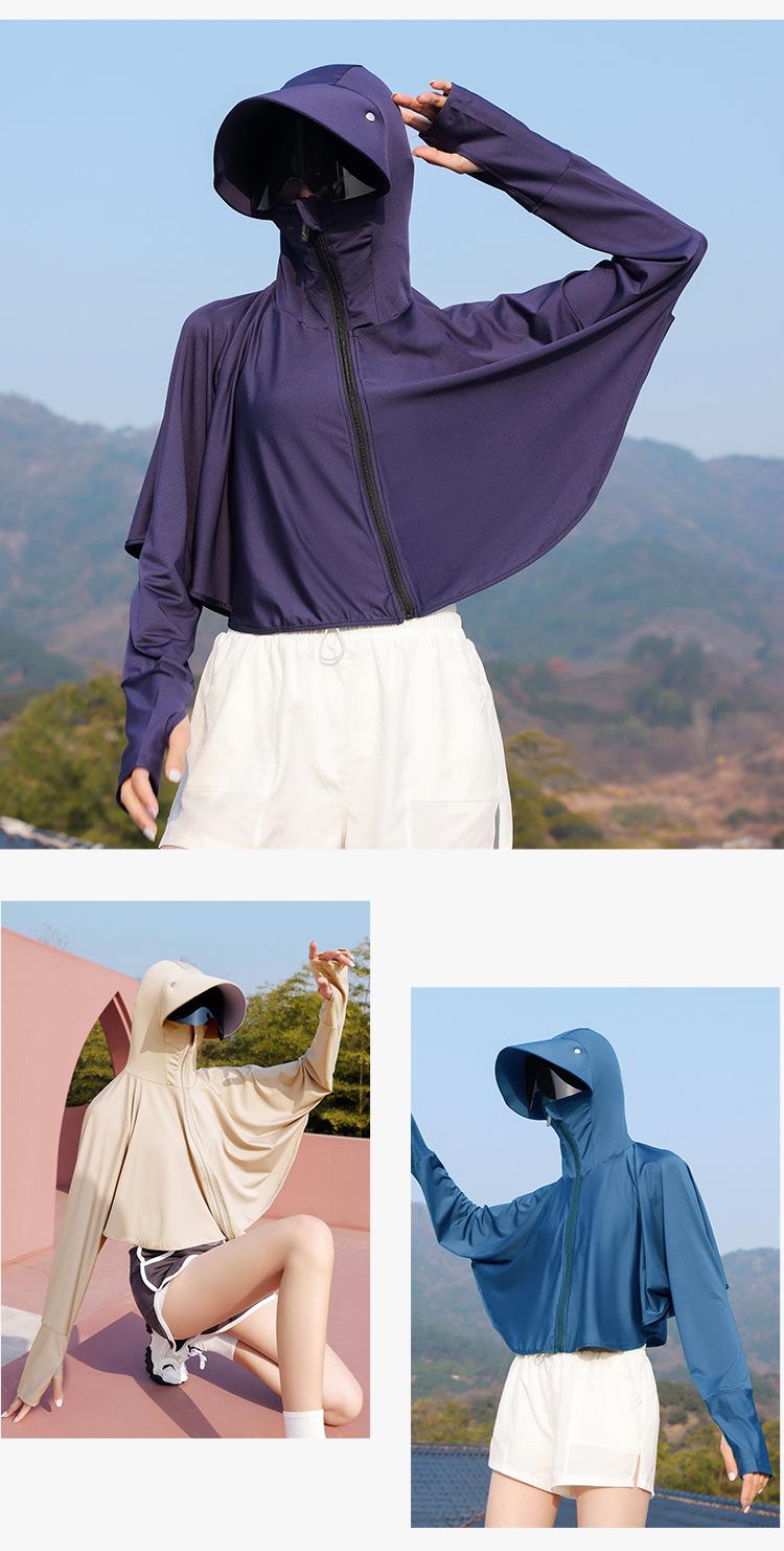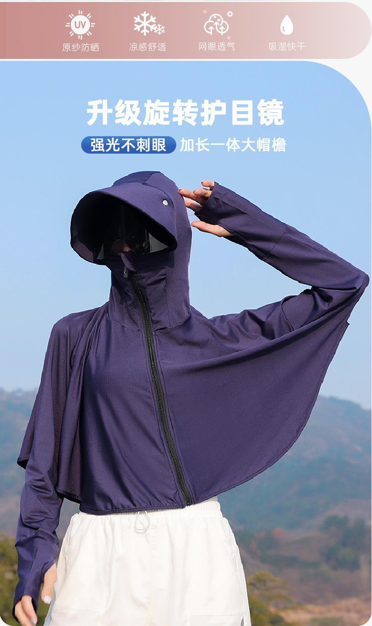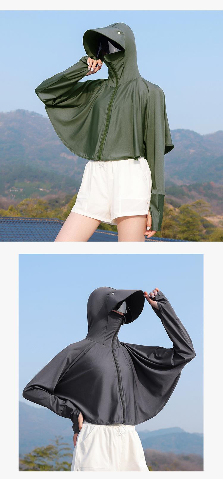 Ropa de Protección Solar para Mujer, Protección UV, Malla de Hielo de Verano, Chal Ultradelgado, Suelto con Capucha, Ropa de Protección Solar Cubre Rostro para Ciclismo