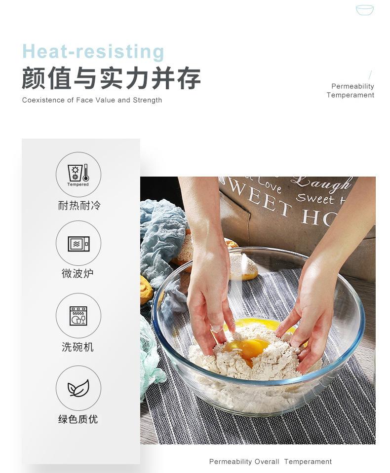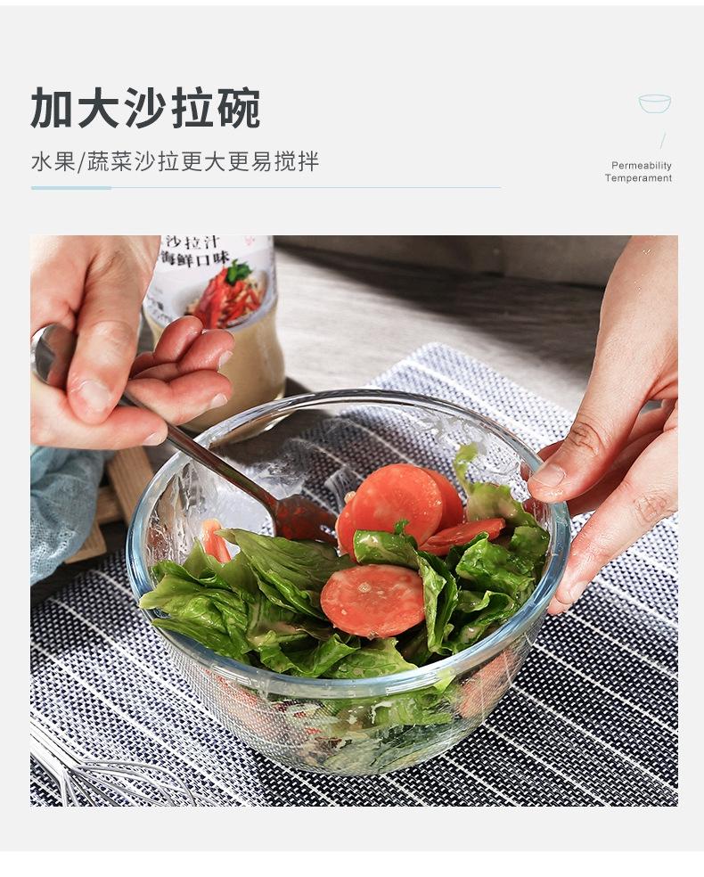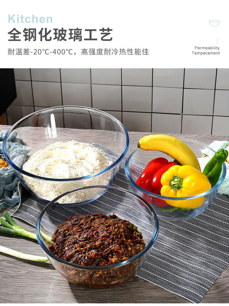 Tazón de vidrio grueso resistente al calor grande para horno de microondas y lavabo 2.7L Tazón para huevos tazón para relleno doméstico tazón para ensalada de frutas