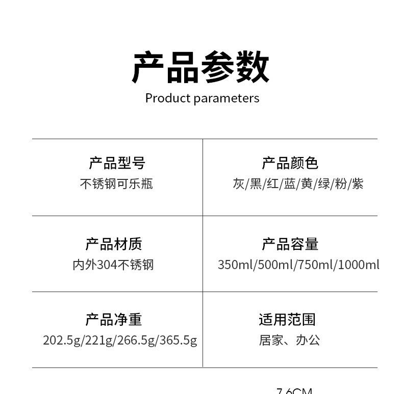 Nuevo vaso de vacío de acero inoxidable de doble capa transfronterizo, vaso de agua deportivo portátil para exteriores, gran capacidad, boca pequeña, botella de Coca-Cola
