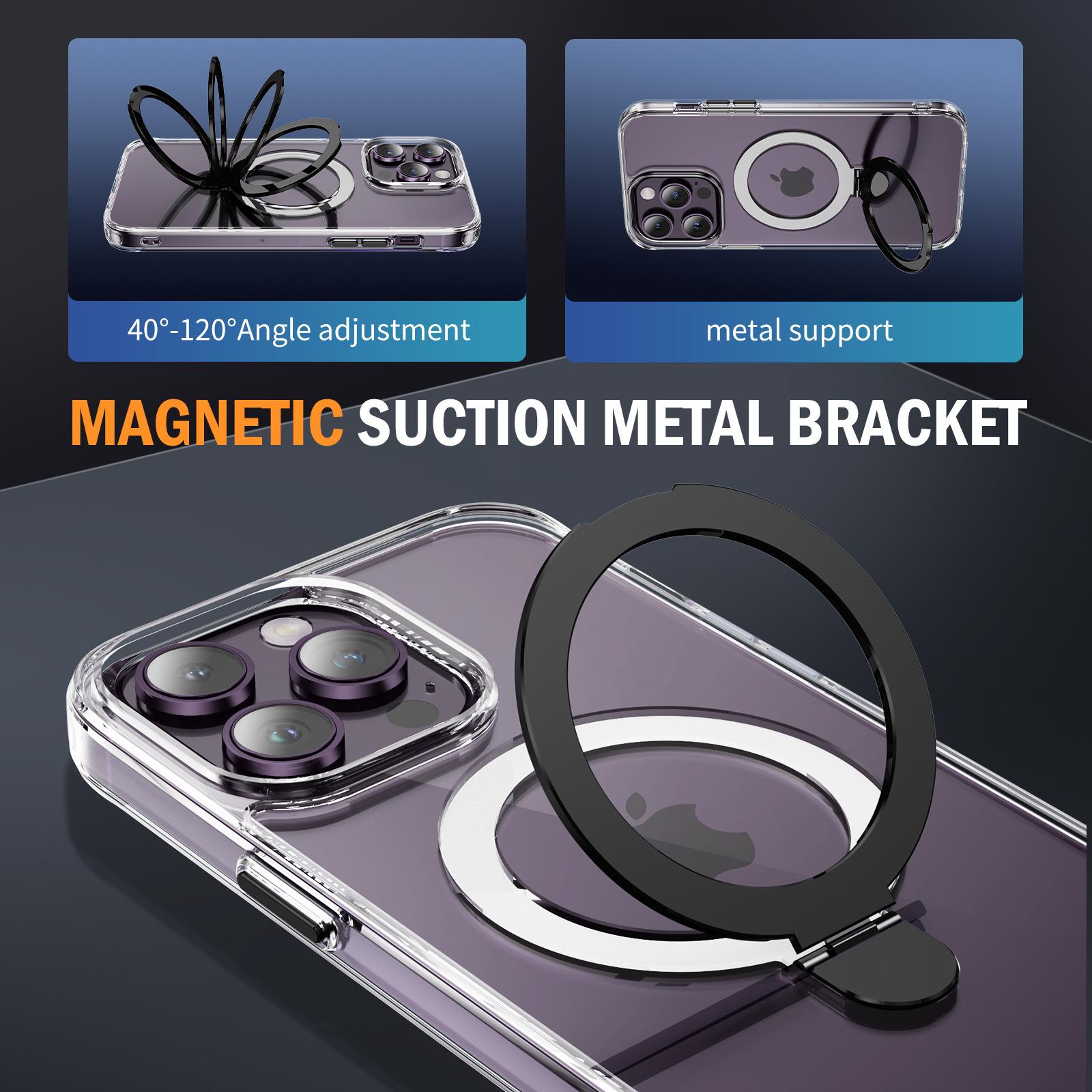 Adecuado para iPhone14Promax Soporte Magnético Funda para Teléfono Móvil Apple 15 Funda Protectora Fulcro Transparente 13 Funda Transfronteriza