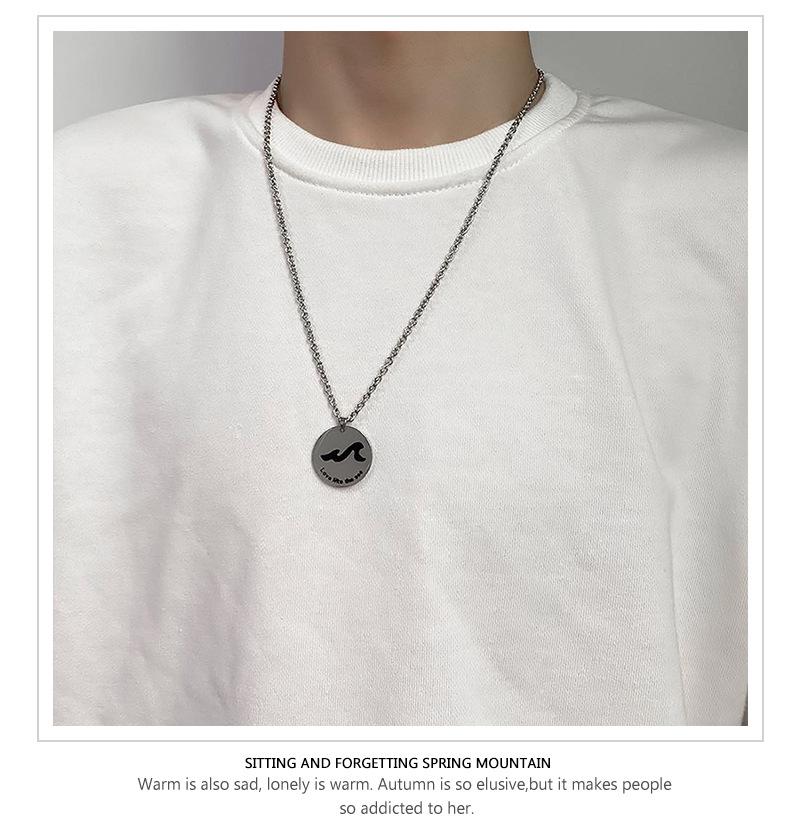 Collar sencillo con personalidad de moda para hombres y mujeres, estilo frío, diseño de nicho, colgante redondo de marca para parejas, cadena de lana.