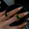 Anillo de piedra preciosa esmeralda con incrustaciones de alta calidad con diseño de nicho europeo y americano, personalidad de moda femenina, anillo de dedo índice exagerado, moda