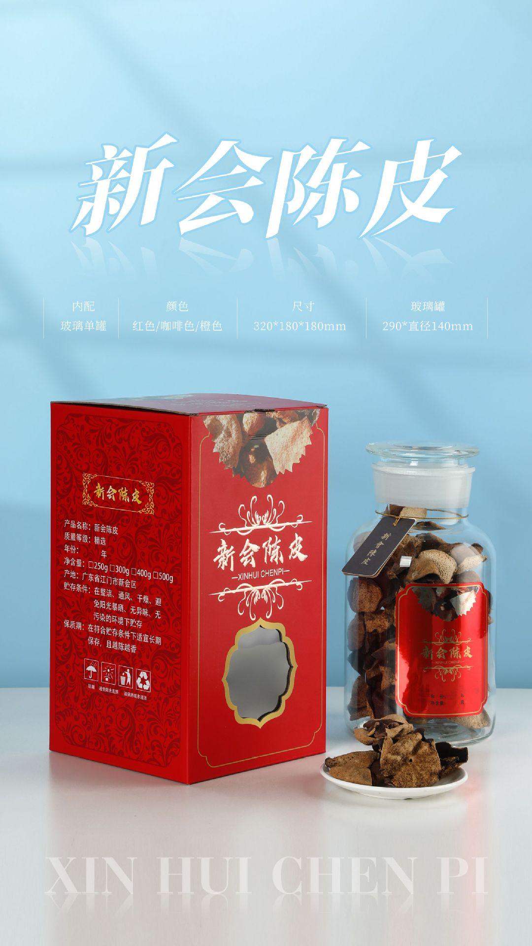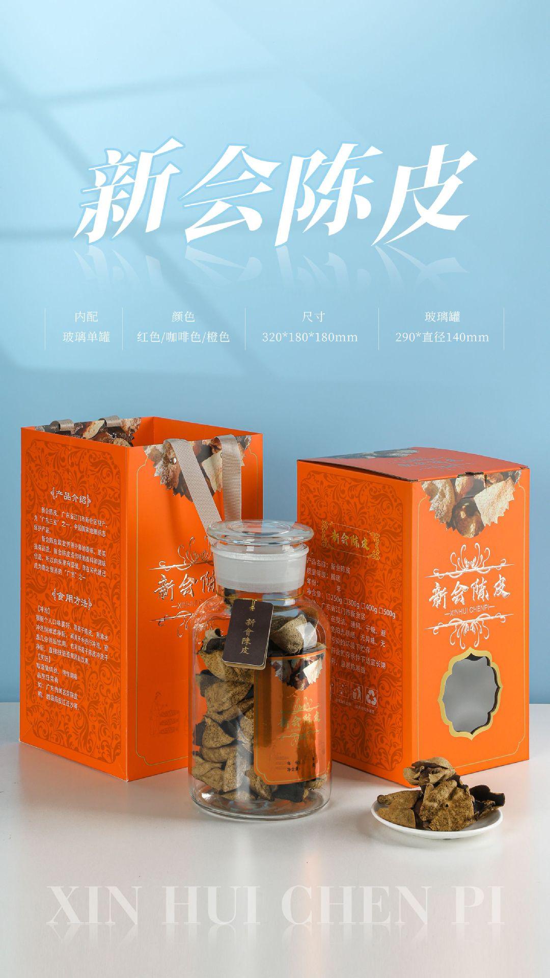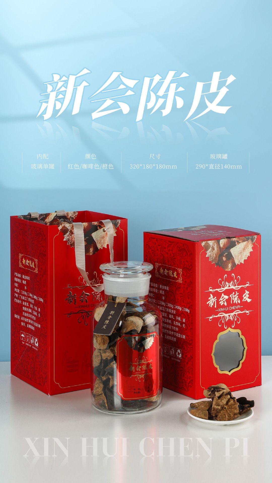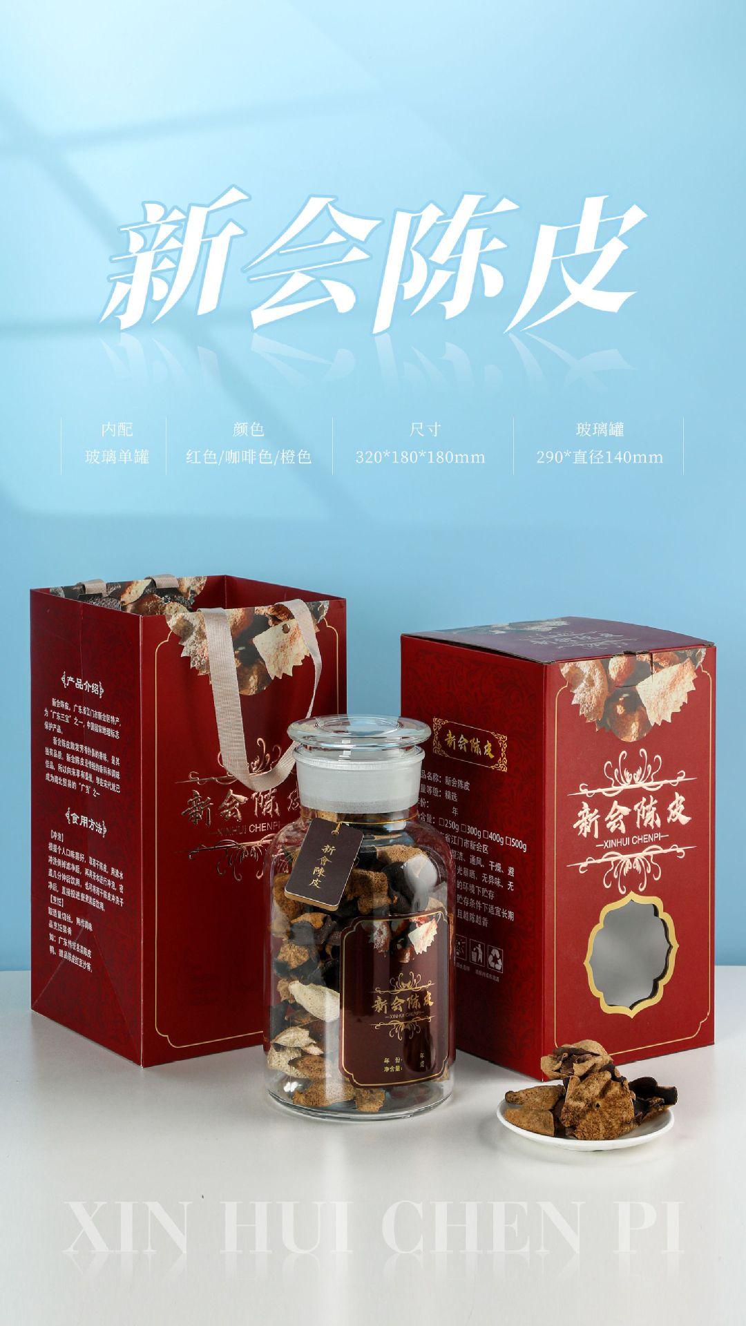 Caja de regalo con cáscara de mandarina Xinhui de alta calidad, botella de vidrio vacía de 250 g, caja de regalo portátil, tanque sellado, caja de regalo complementaria