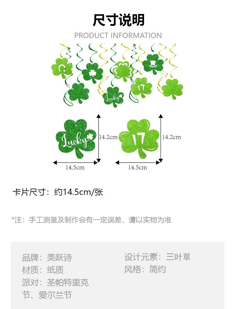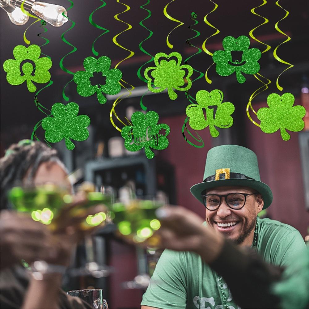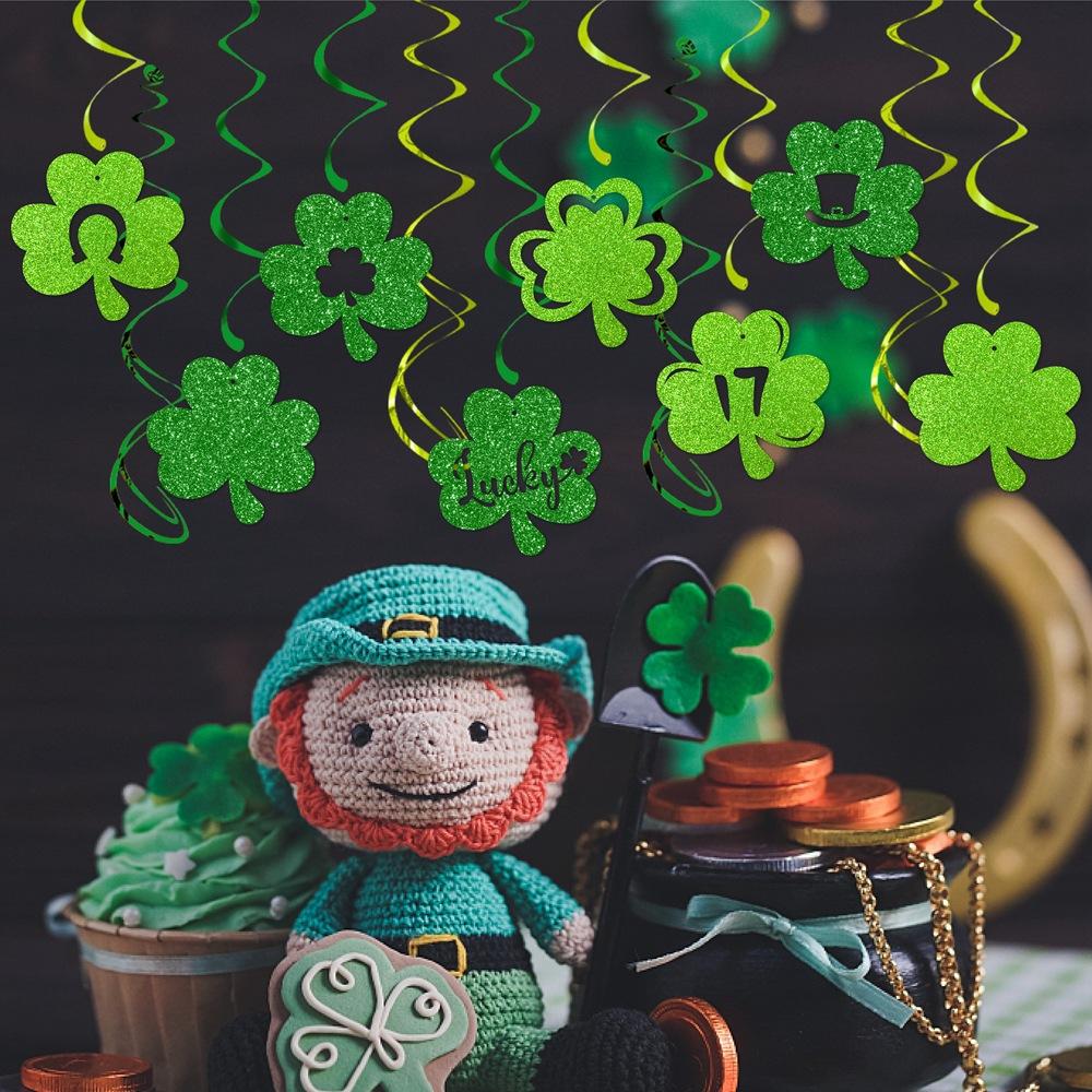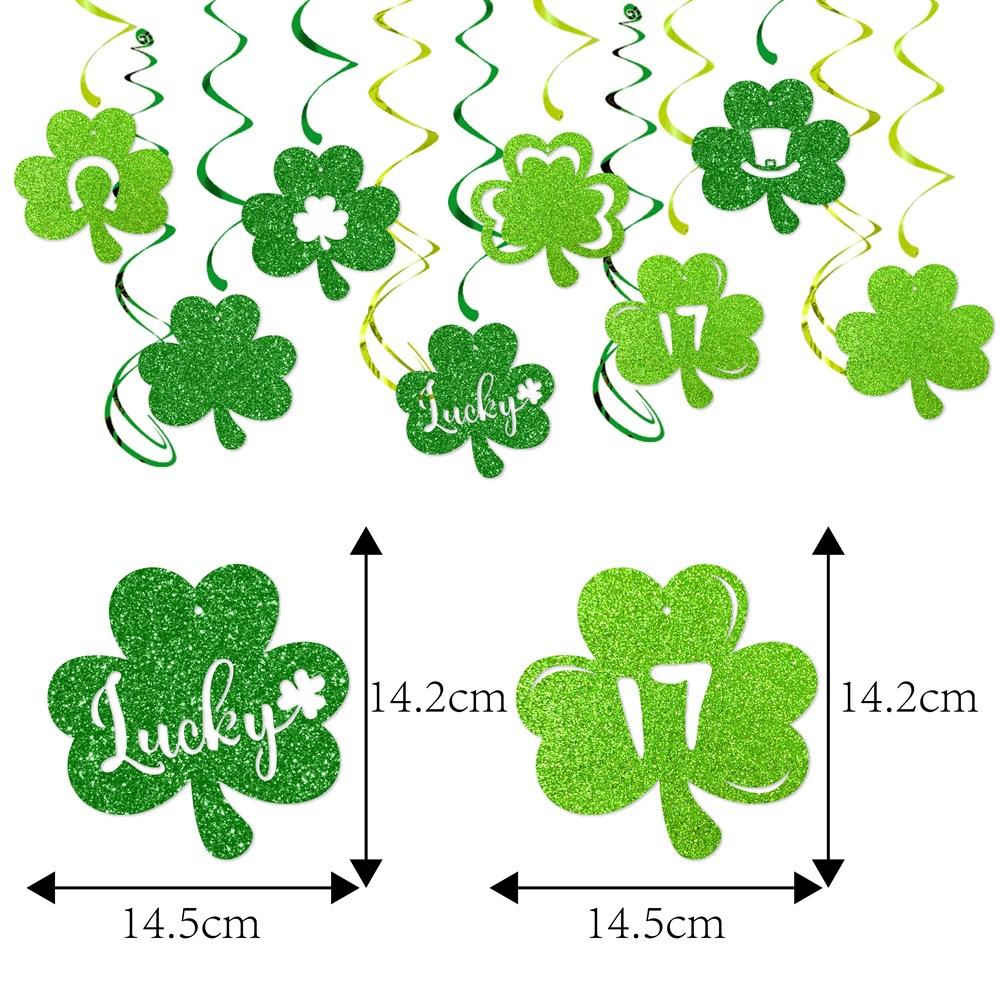 Uso del producto:Adornos colgantes en espiral para decoración de techo festivo del Día de San Patricio, suministros de decoración de ambiente de festival irlandés, suministros de decoración para fiesta de cumpleaños.