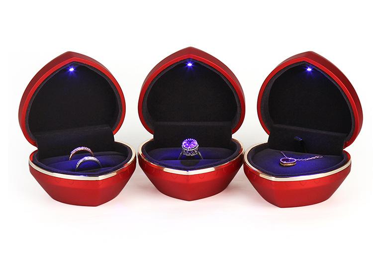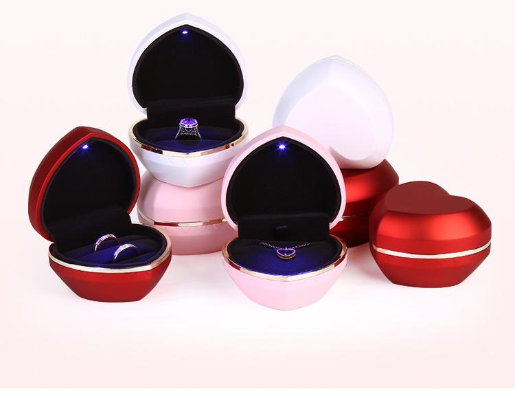 Caja creativa con forma de corazón para anillos de propuesta con luz LED, caja para regalo, caja para joyería, embalaje para joyas, collar con colgante, caja para joyería al por mayor