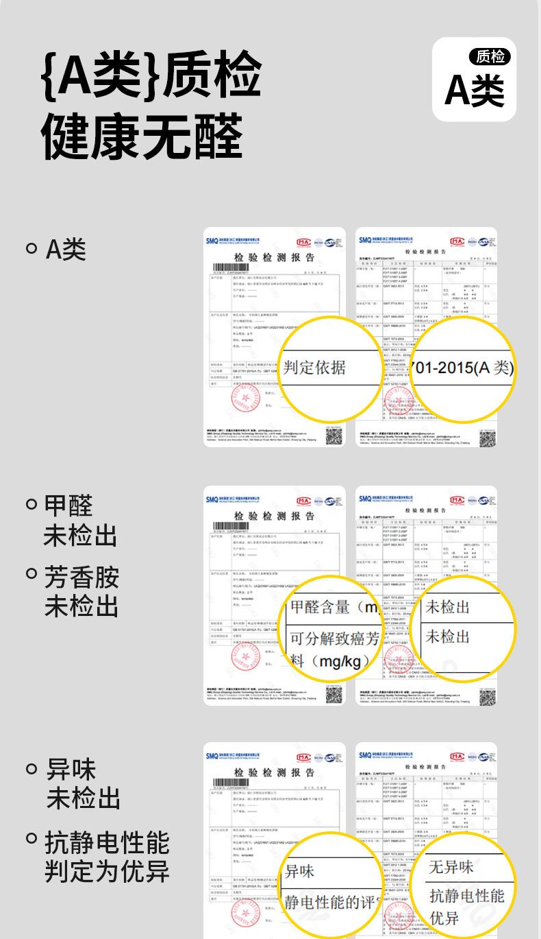 (9) Descripción del producto: Tejido de clase A, libre de formaldehído, sin olor.