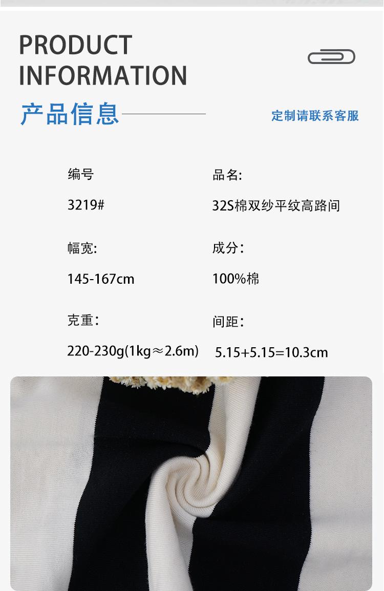 Tejido de punto a rayas de los años 21, tejido de algodón peinado de hilado compacto, camiseta, ropa para hombre y mujer, tejido de punto de algodón de ligamento tafetán de doble hilo