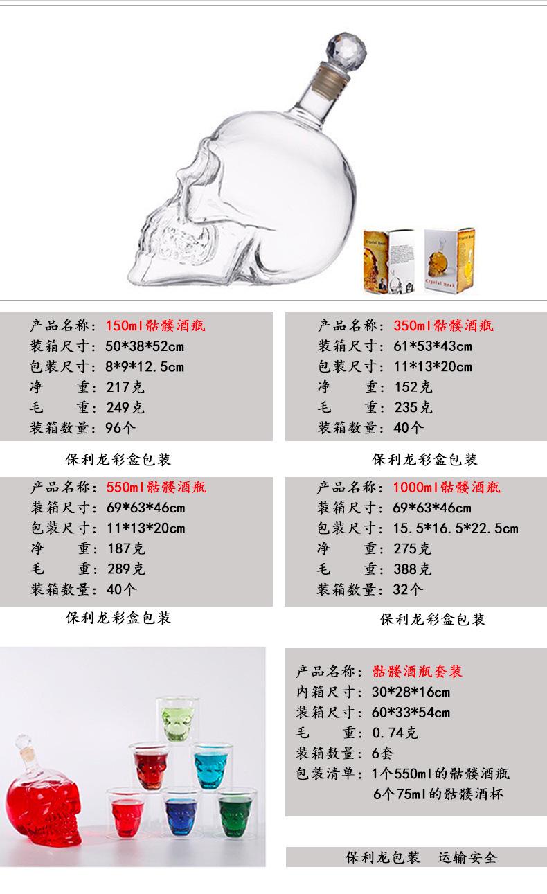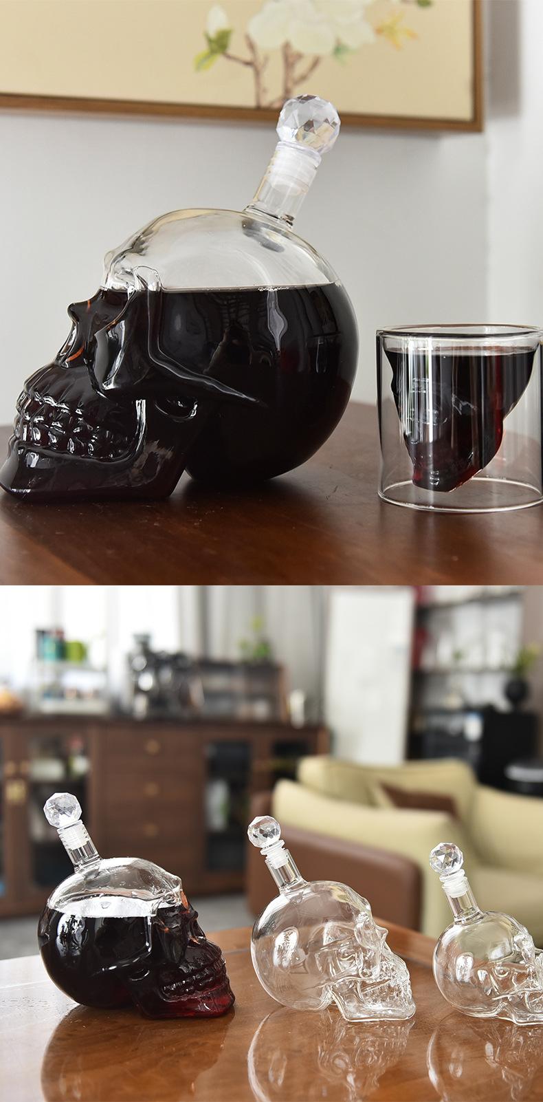 Botella de vino con forma de calavera y hueso de origen transfronterizo, vodka, vino, botella de vino, decantador, 350 ml, 550 ml y 1000 ml.