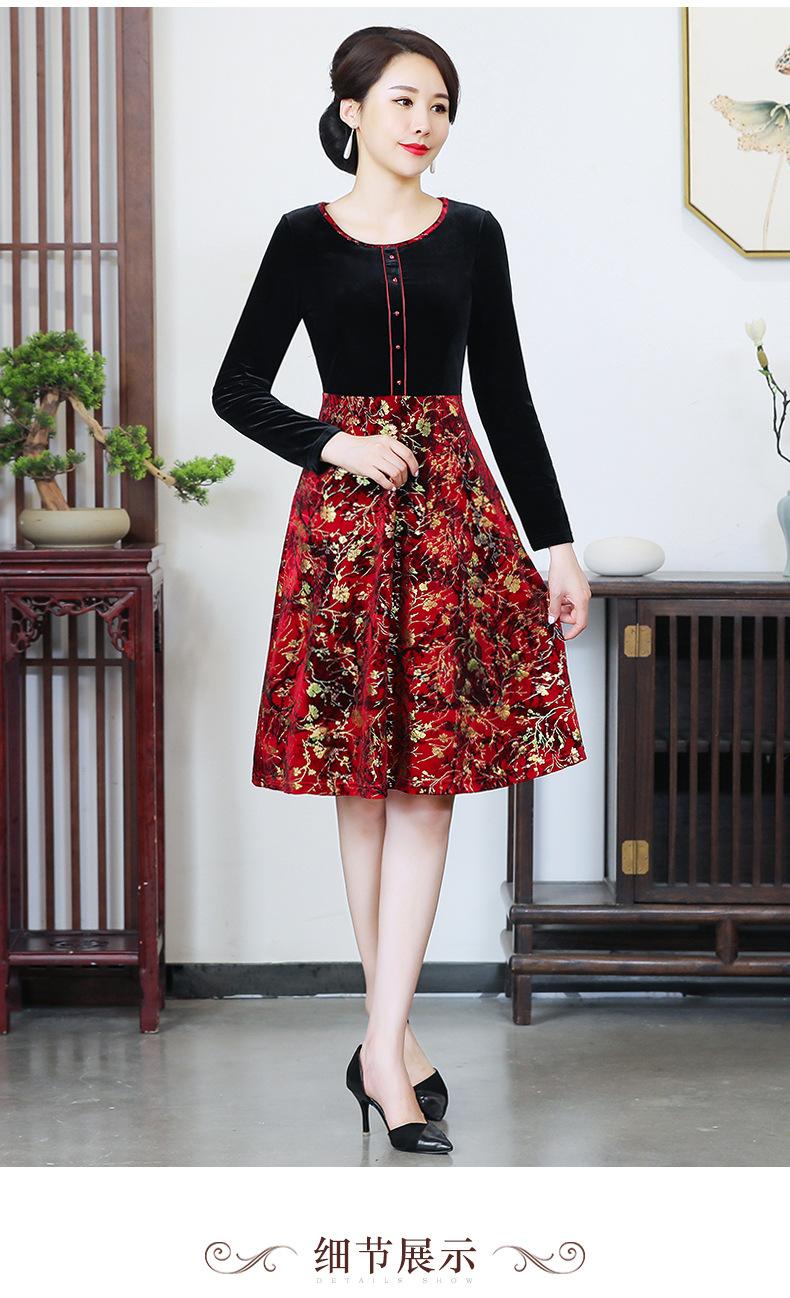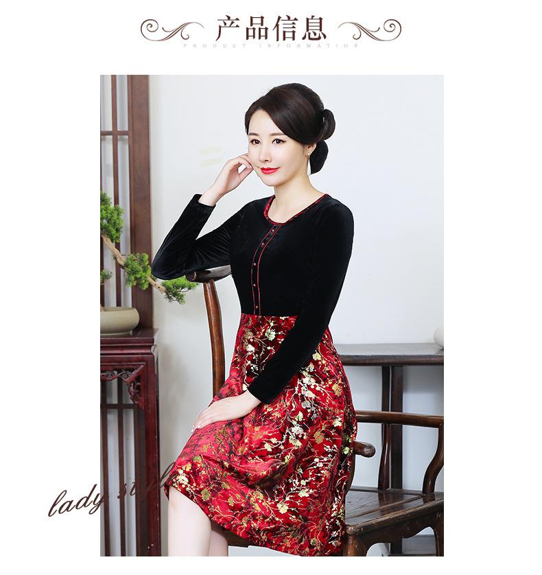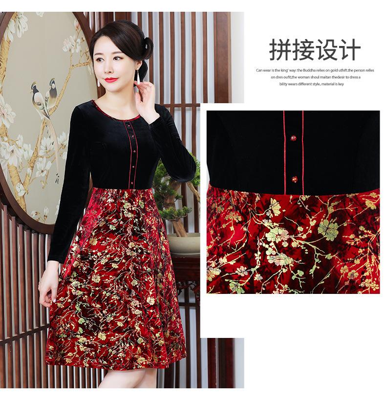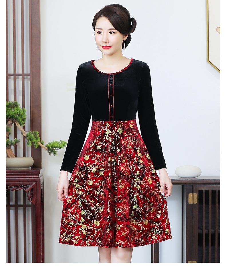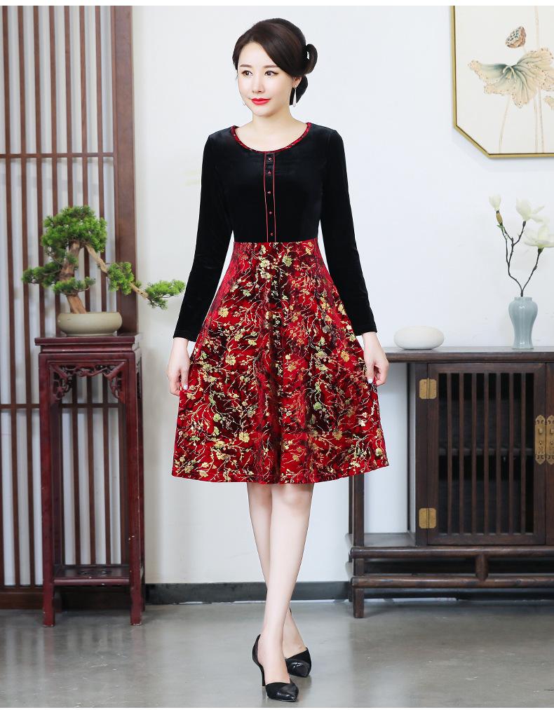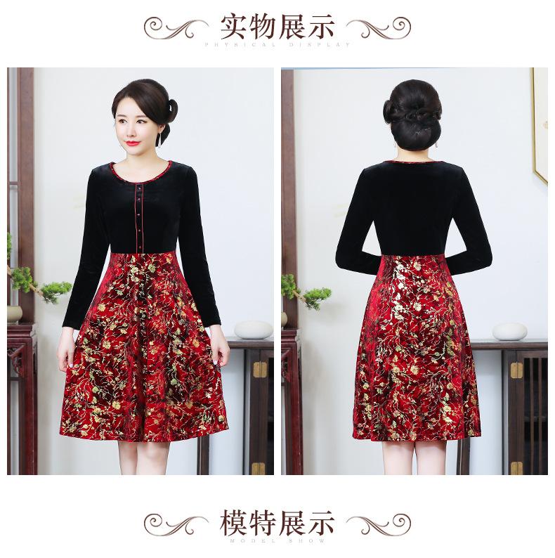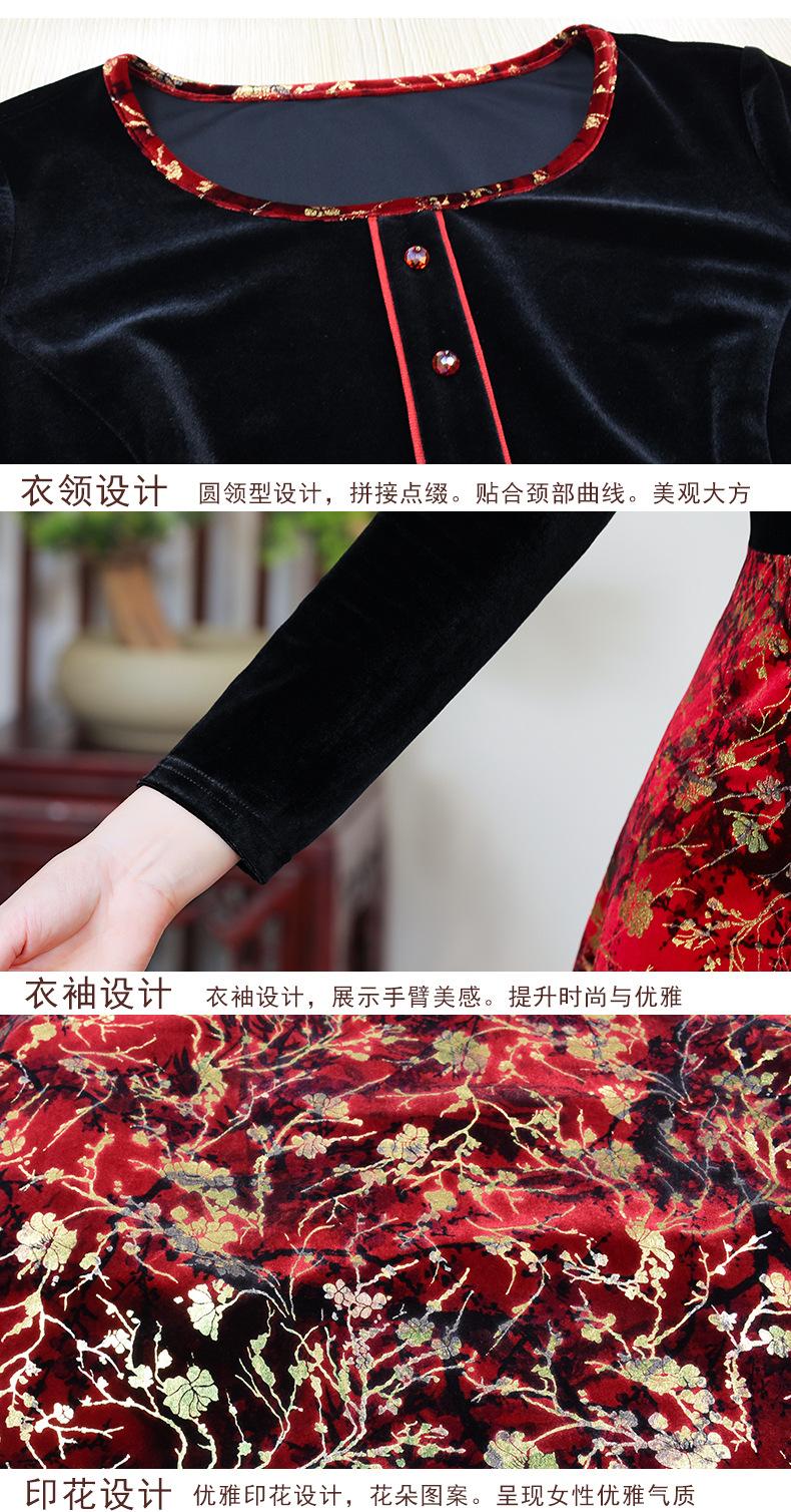 2024 otoño nuevo vestido de moda para madre terciopelo estampado costuras vestido largo elegante para mujer