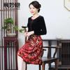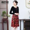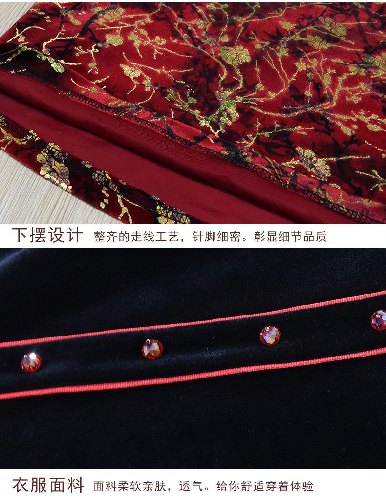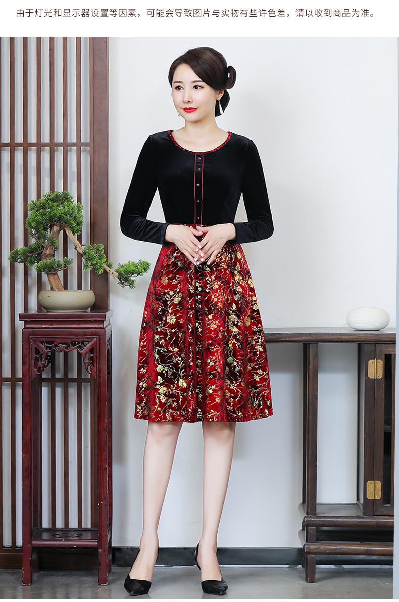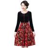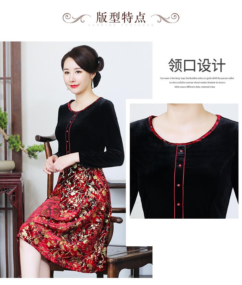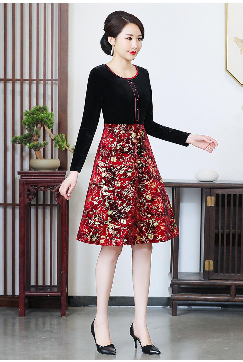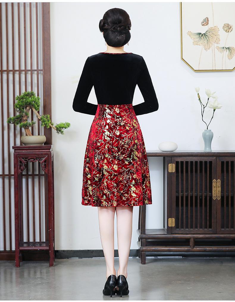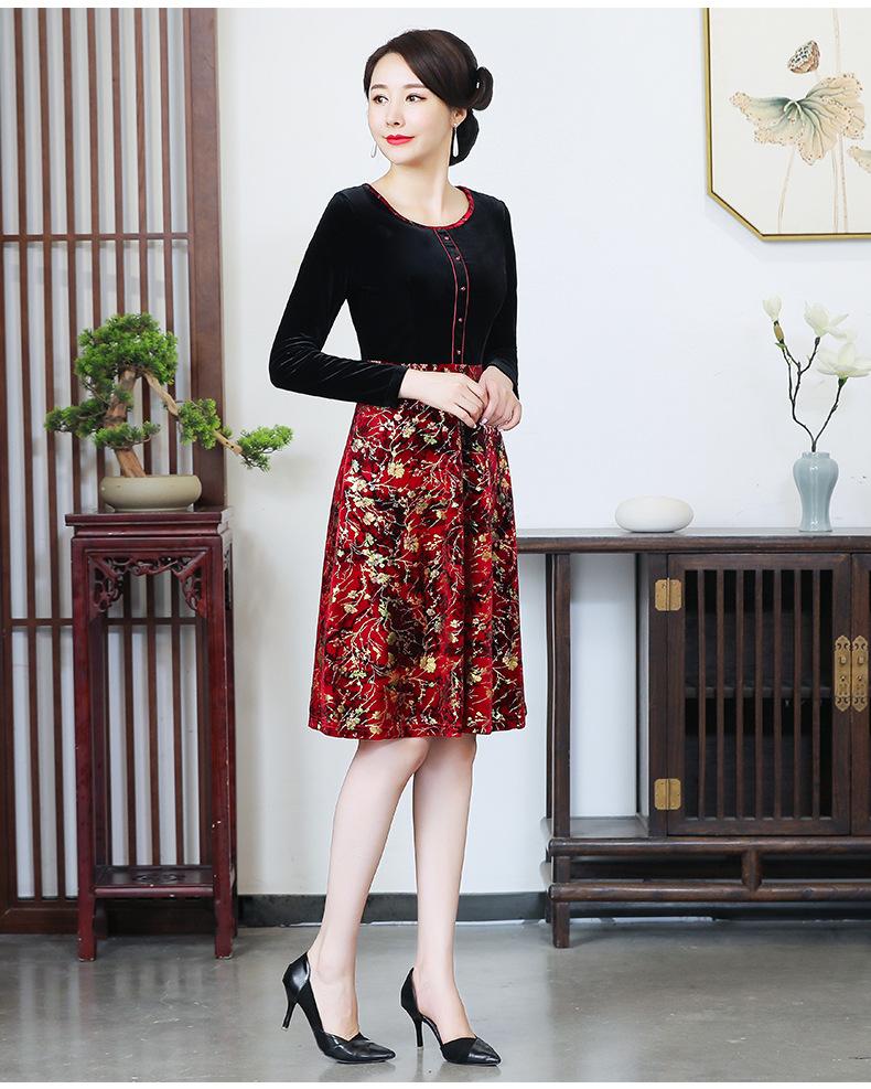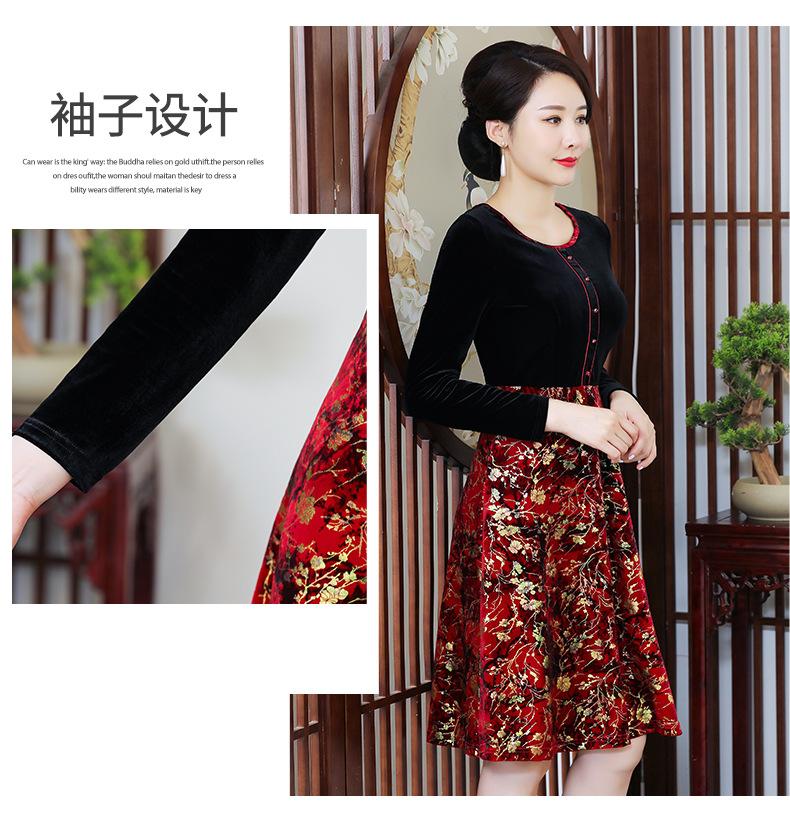 2024 otoño nuevo vestido de moda para madre terciopelo estampado costuras vestido largo elegante para mujer