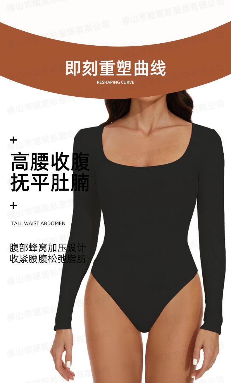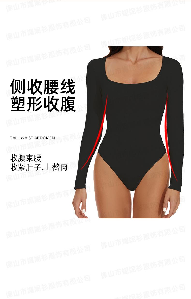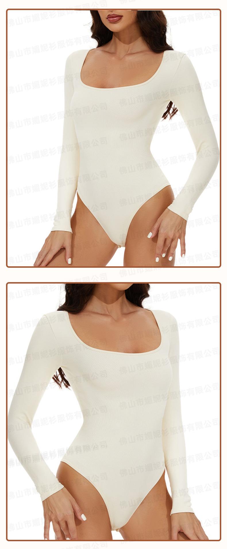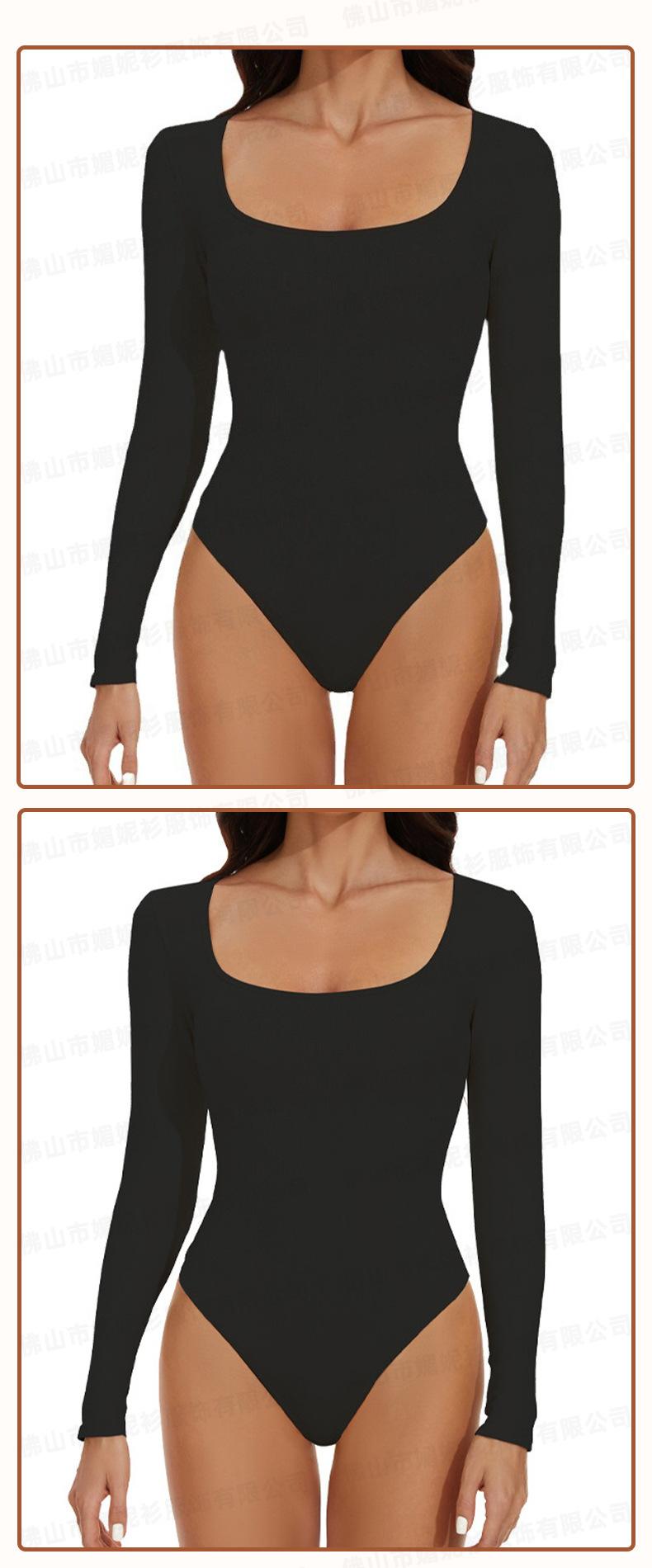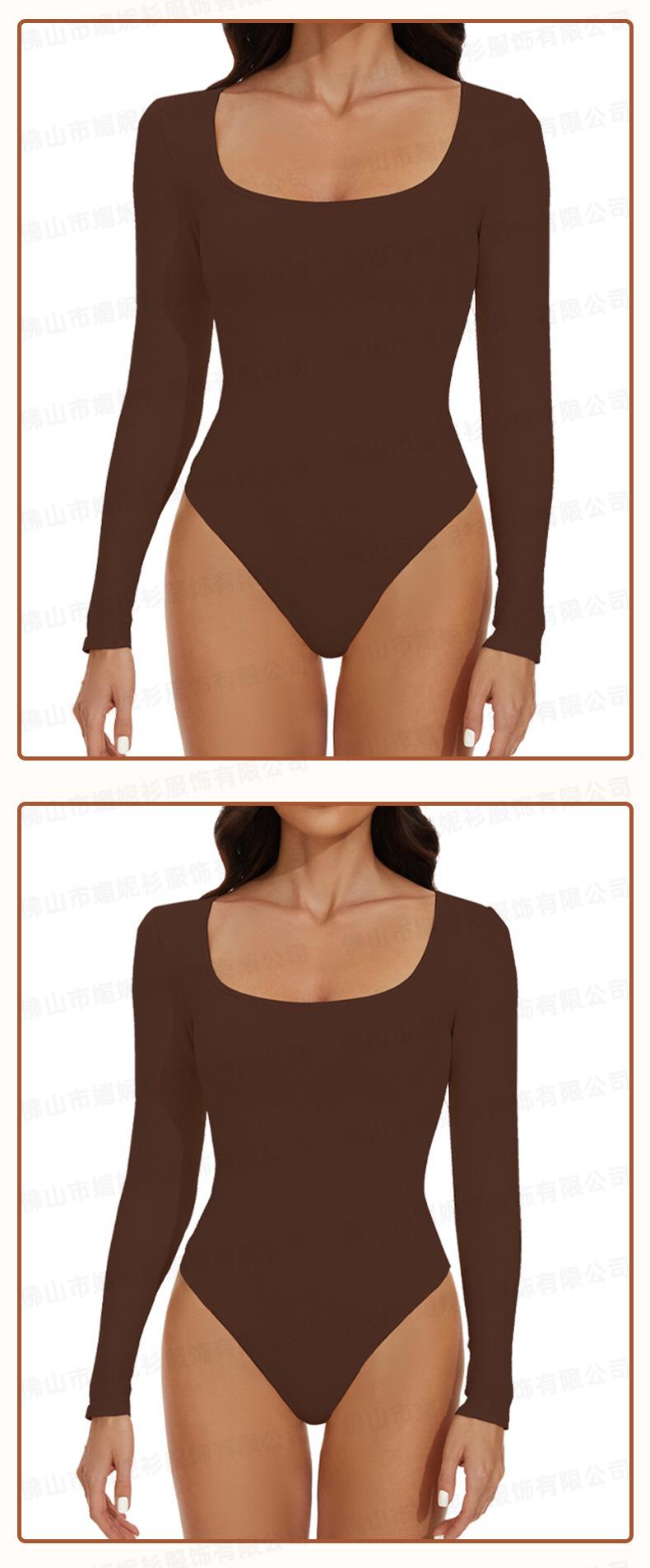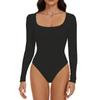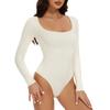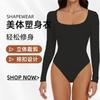 Mono de color sólido para mujer, base elástica alta, talla grande, levantamiento de cadera, cuello cuadrado, manga larga, mono moldeador de cuerpo sin costuras bodyshap