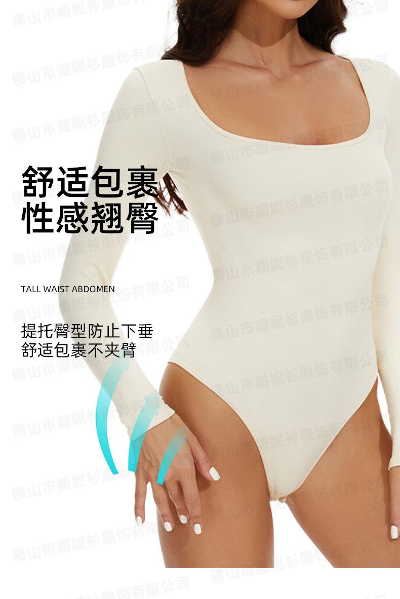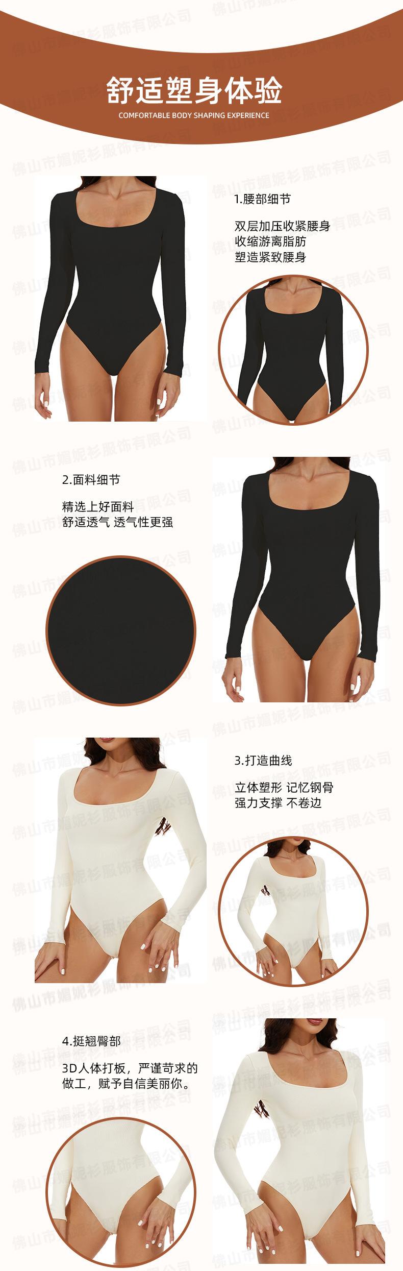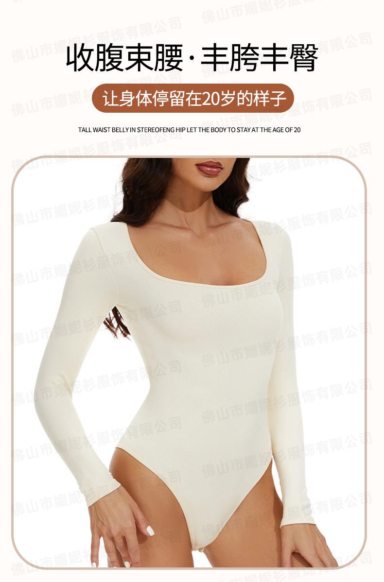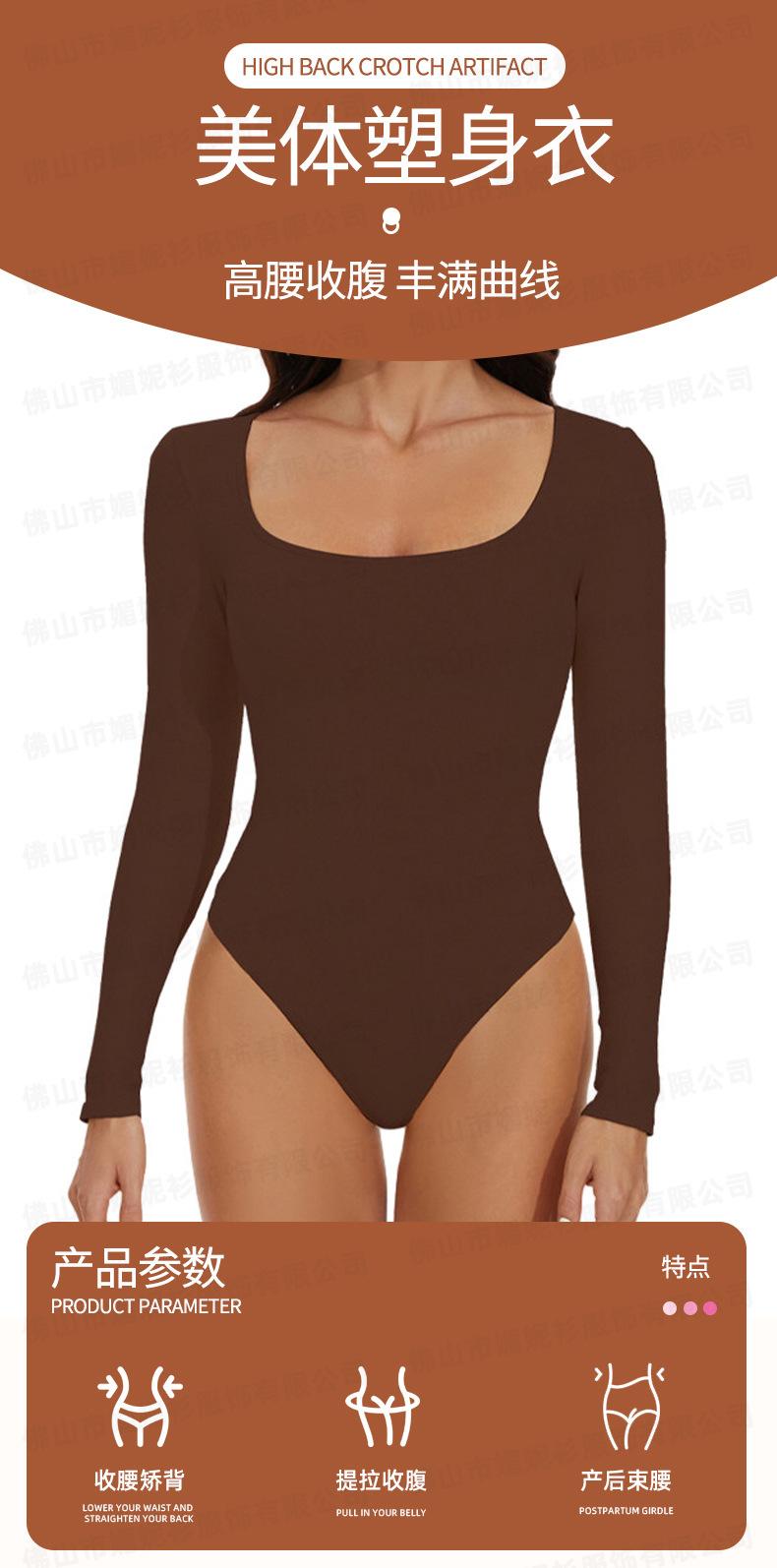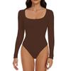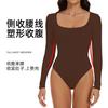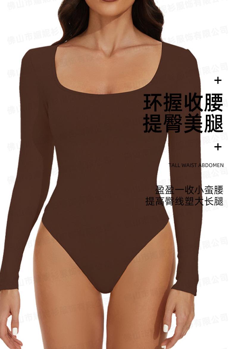 Mono de color sólido para mujer, base elástica alta, talla grande, levantamiento de cadera, cuello cuadrado, manga larga, mono moldeador de cuerpo sin costuras bodyshap