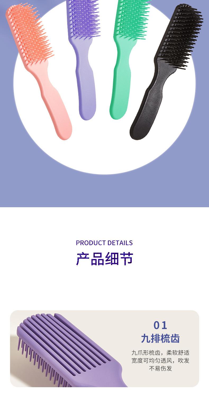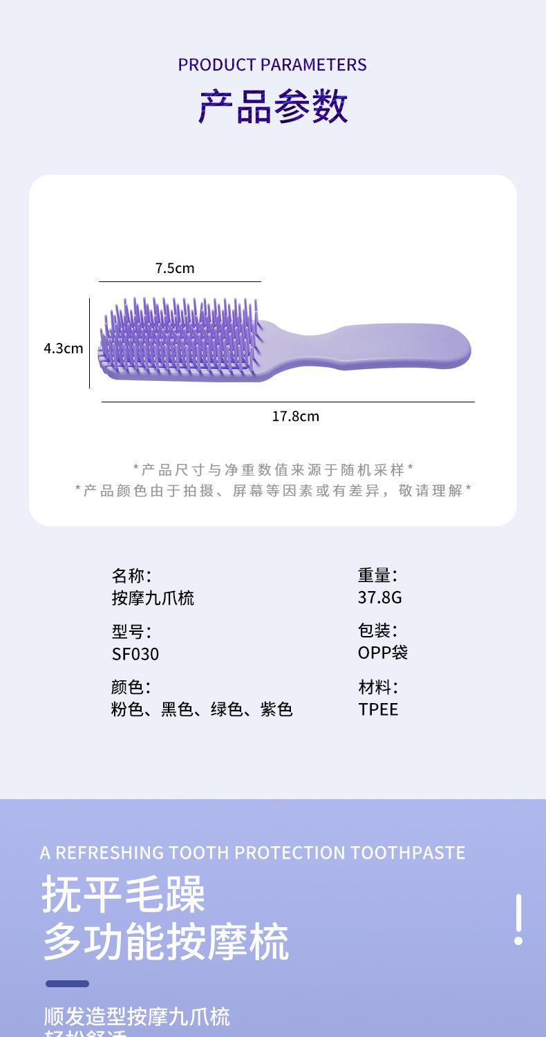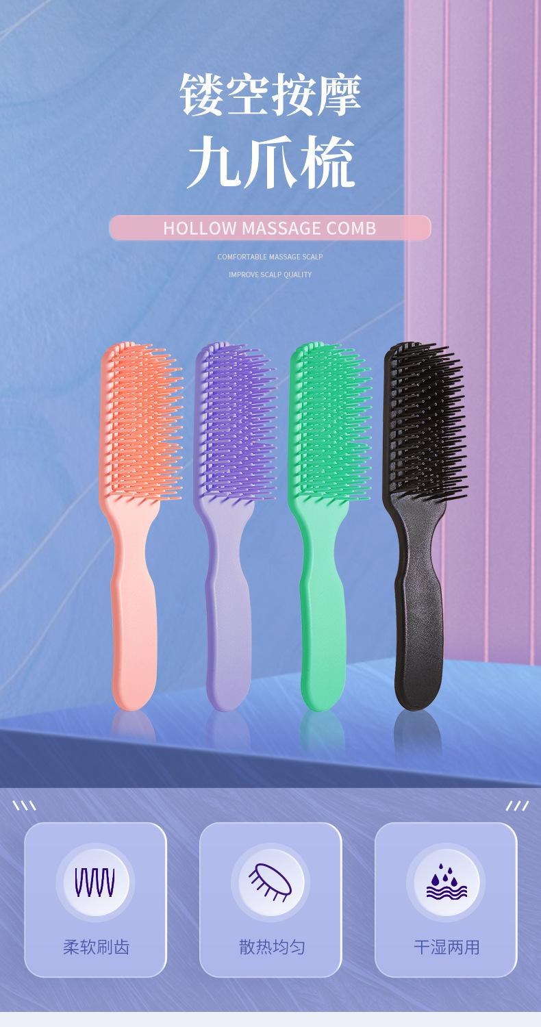 Peine de masaje de cabeza para niñas, venta directa de fábrica de plástico, peine de peluquería de nueve garras, peine elástico para cabello liso, venta al por mayor de dulces