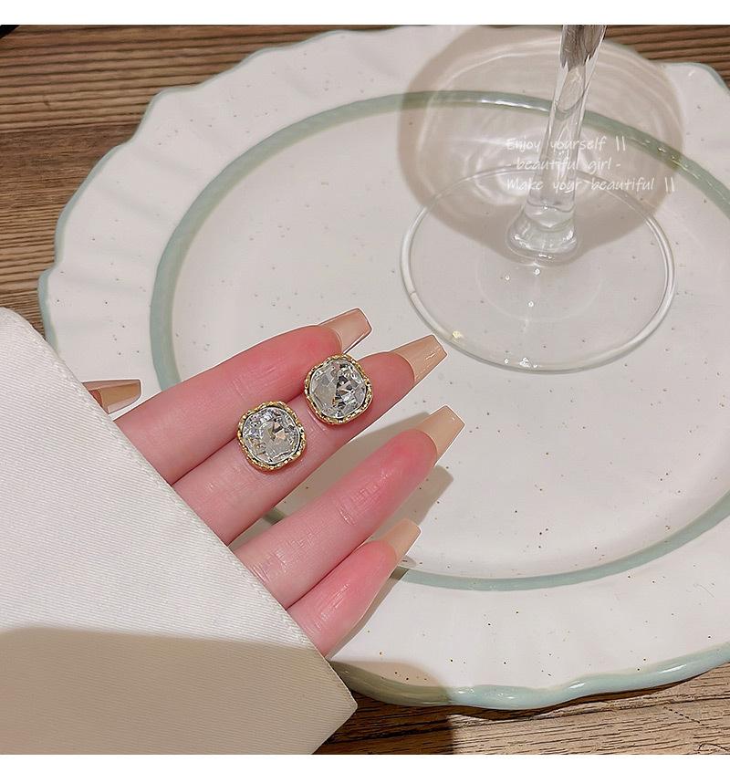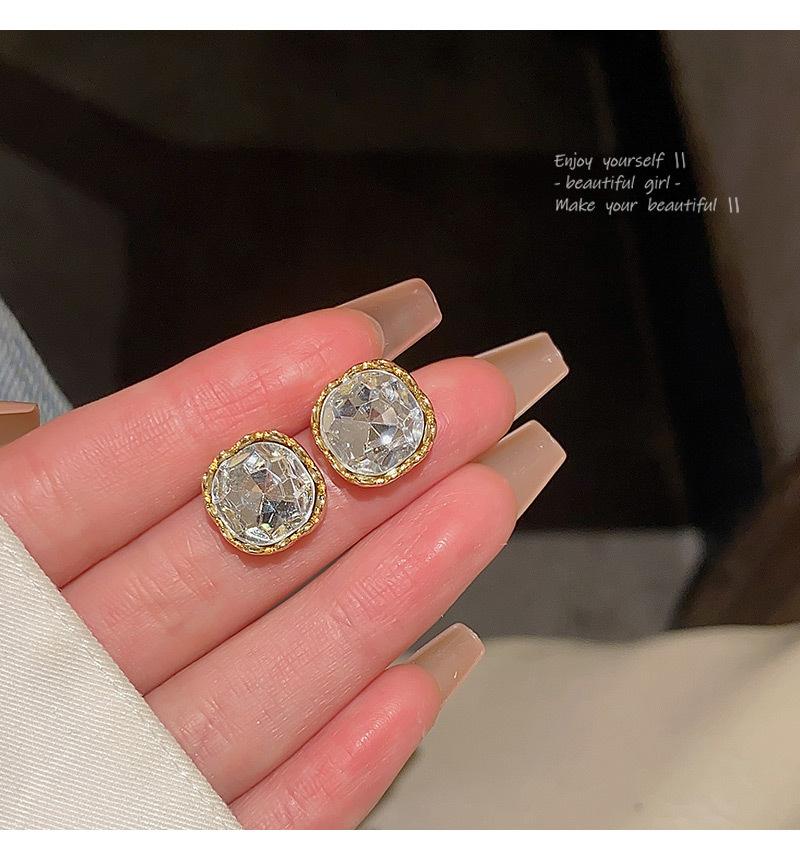 Pendientes de circonitas exquisitas con aguja de plata S925, súper brillantes, para mujer, temperamento versátil, pendientes geométricos simples, pendientes del mismo estilo de celebridades de Internet.