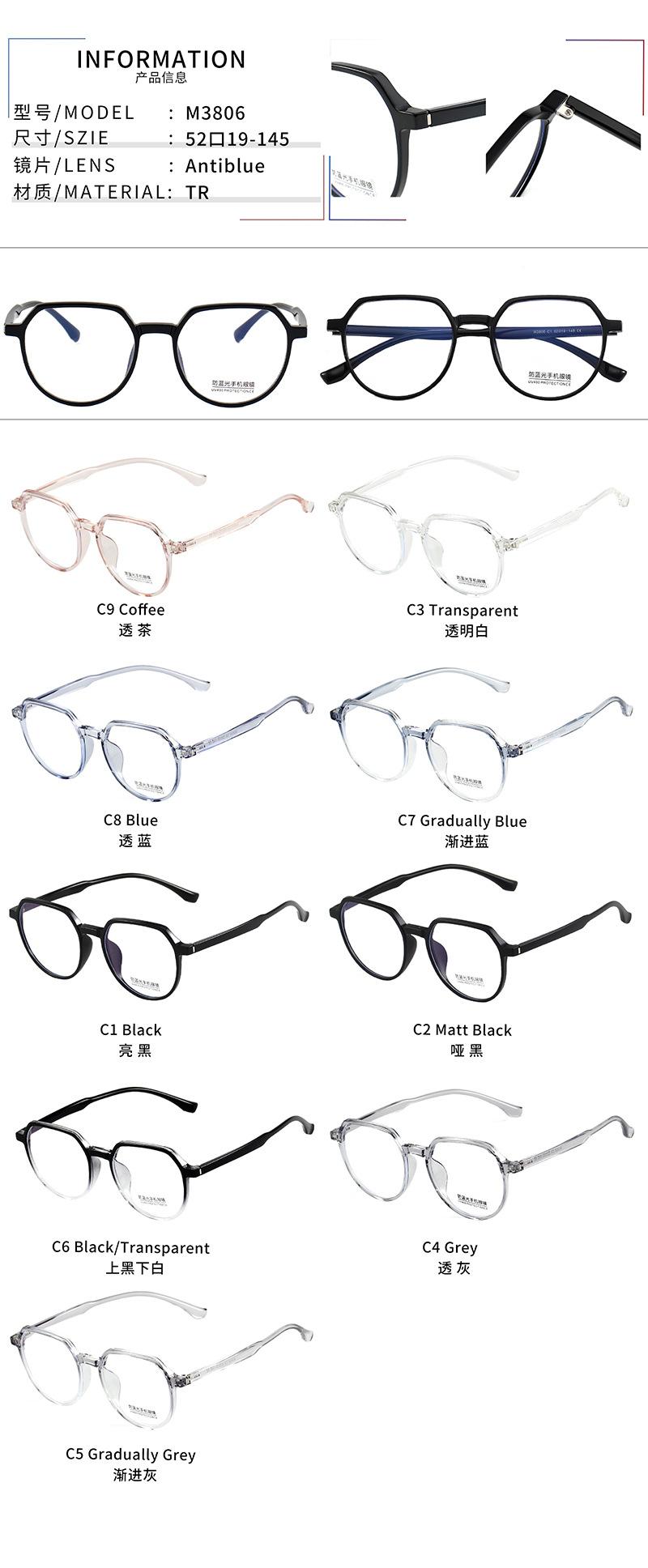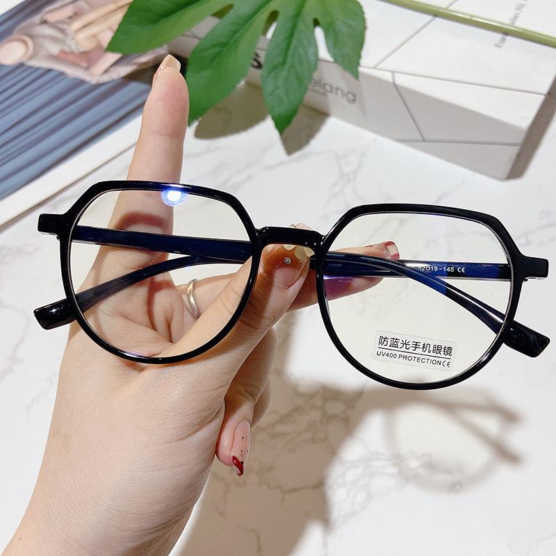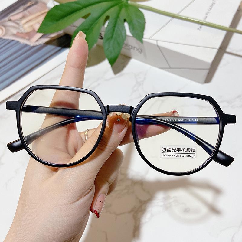 M3806 Gafas de estilo universitario, para estudiantes, hombres y mujeres, con lentes de estilo urbano, anti-luz azul, estilo polígono liso, para literatura y arte.