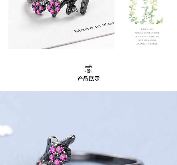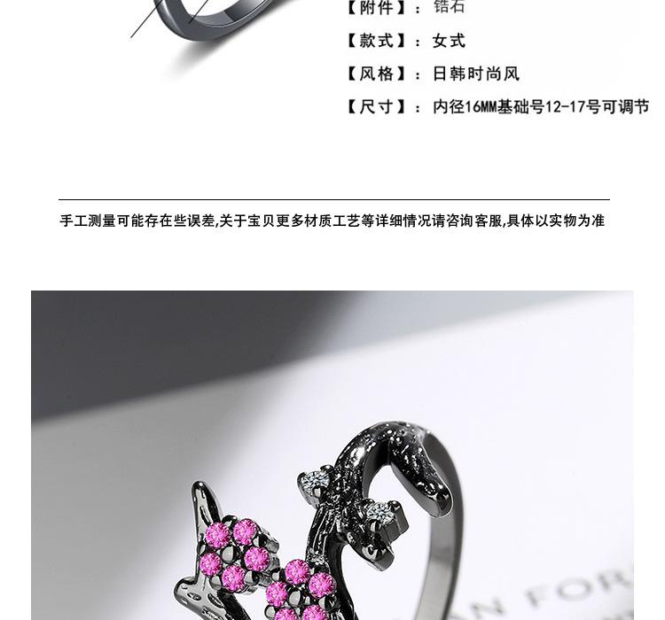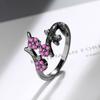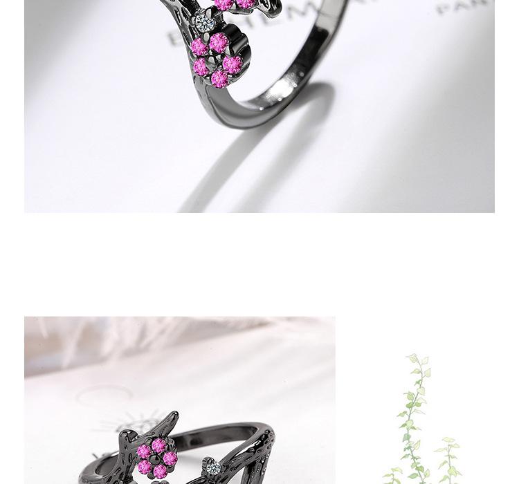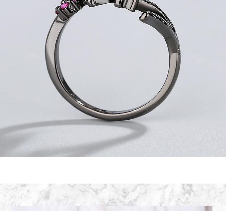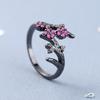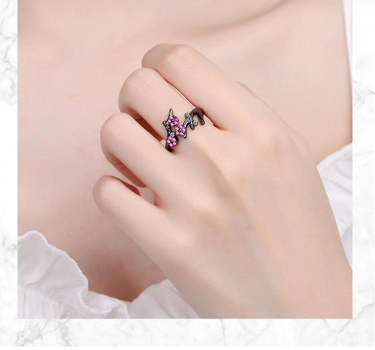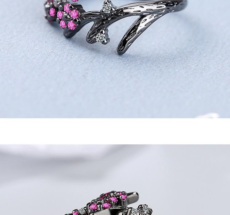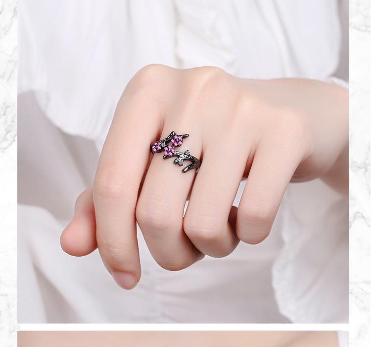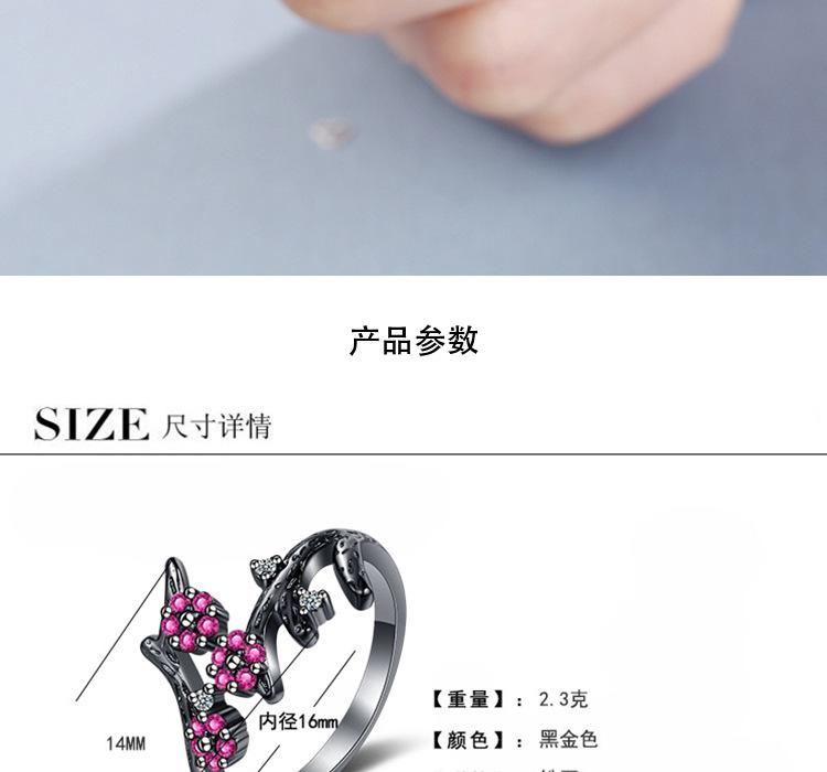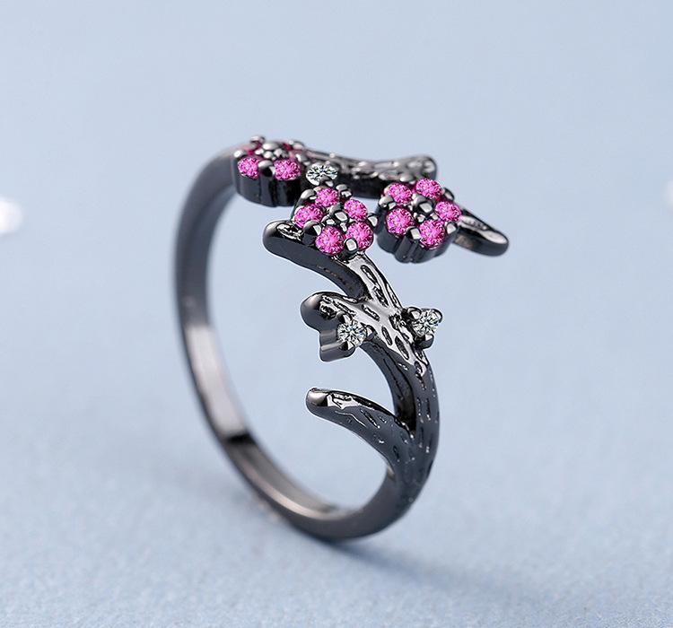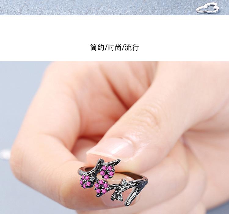 Anillo Abierto de Rama de Oro Negro con Diamante de Zirconio para Mujer, Temperamento Transfronterizo de Hoja, Anillo Único