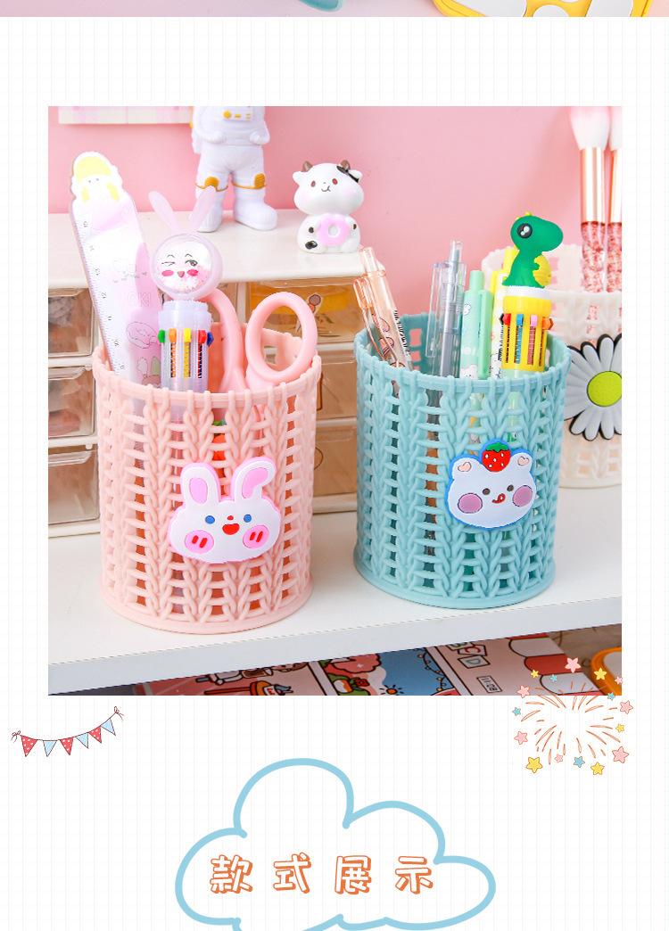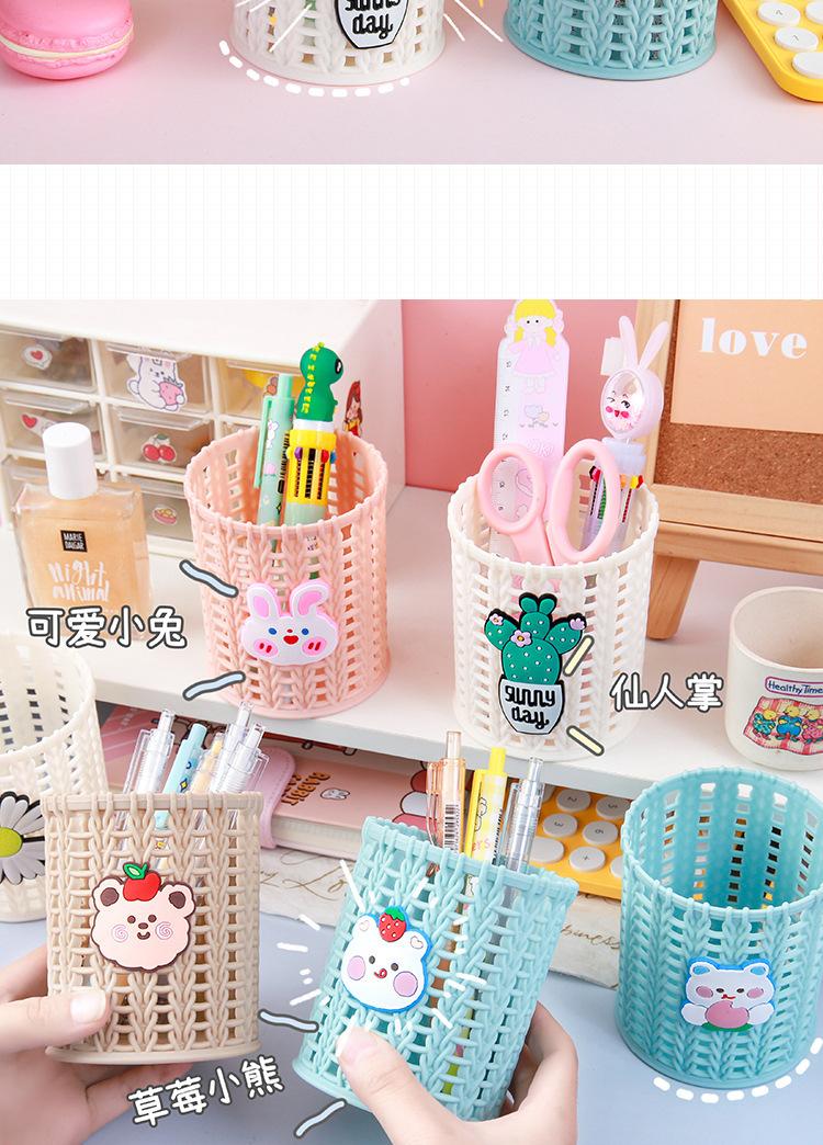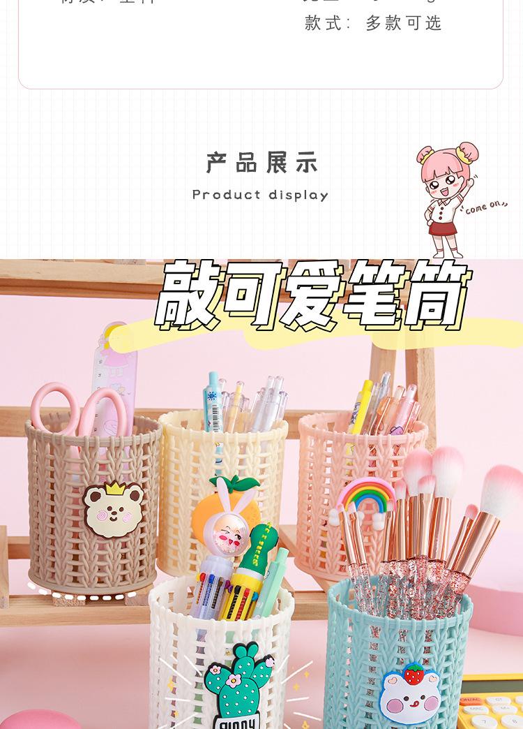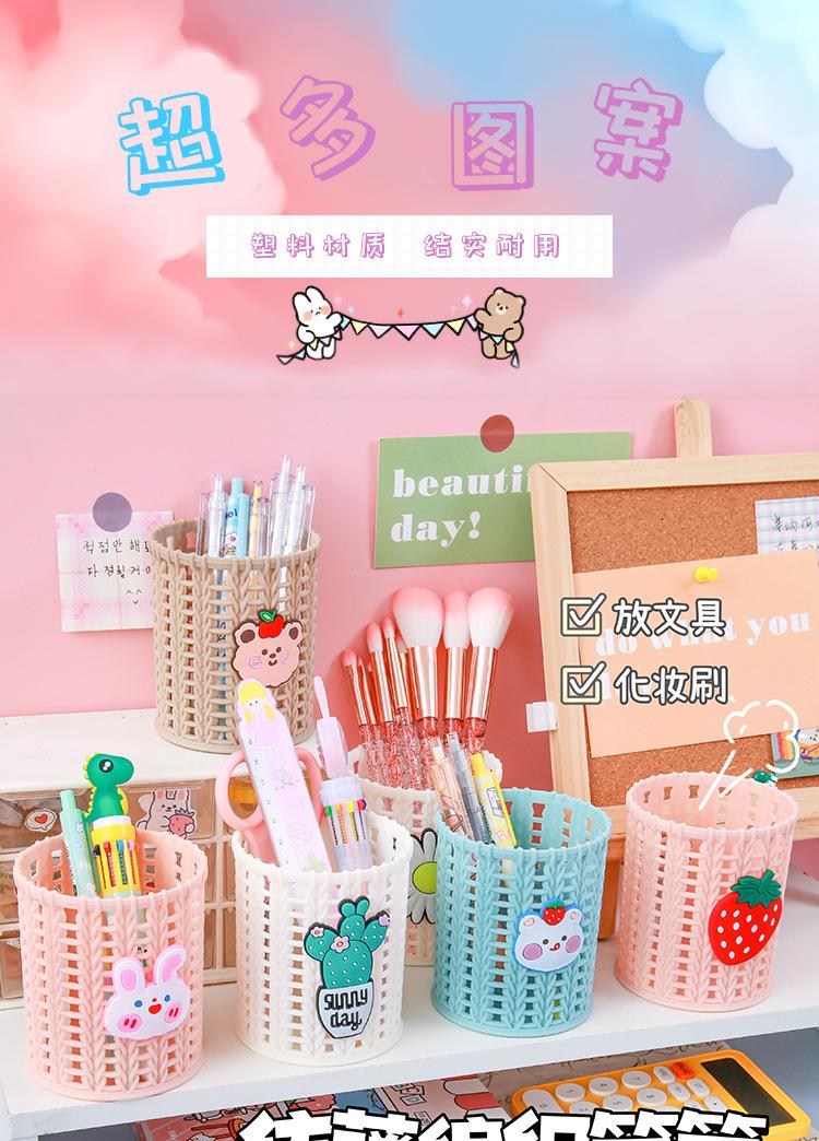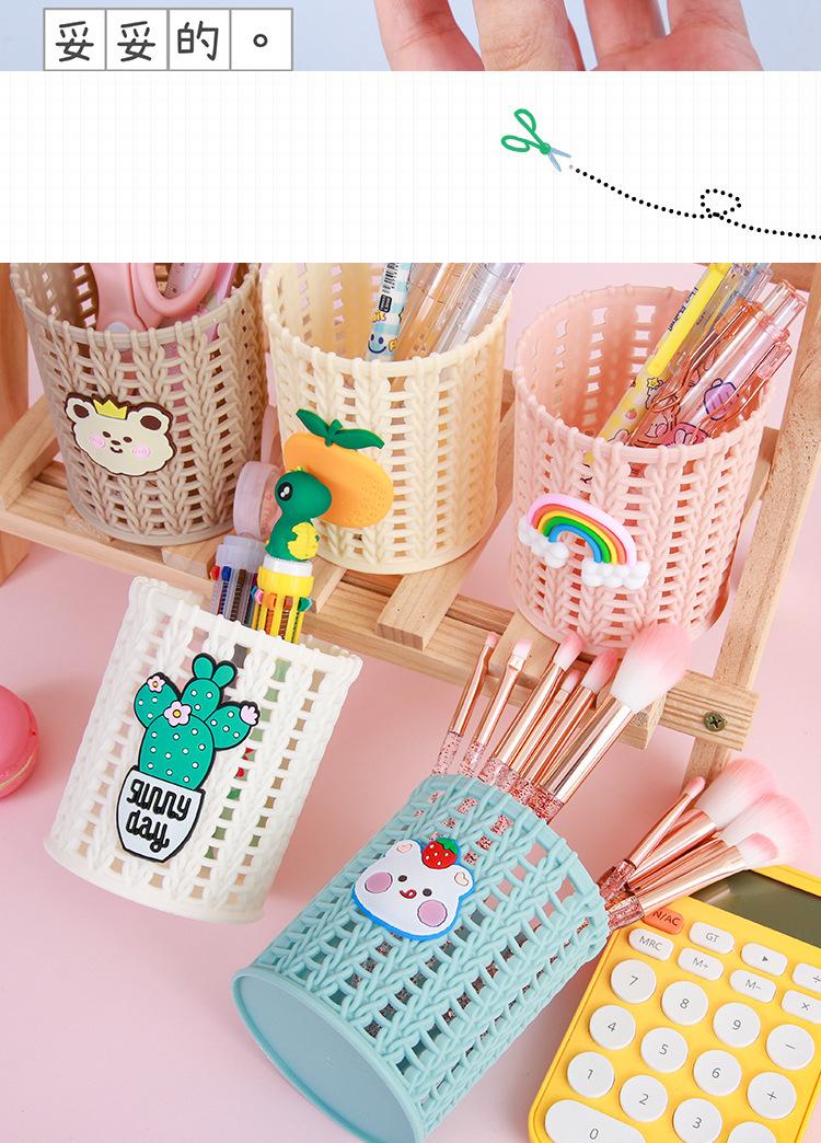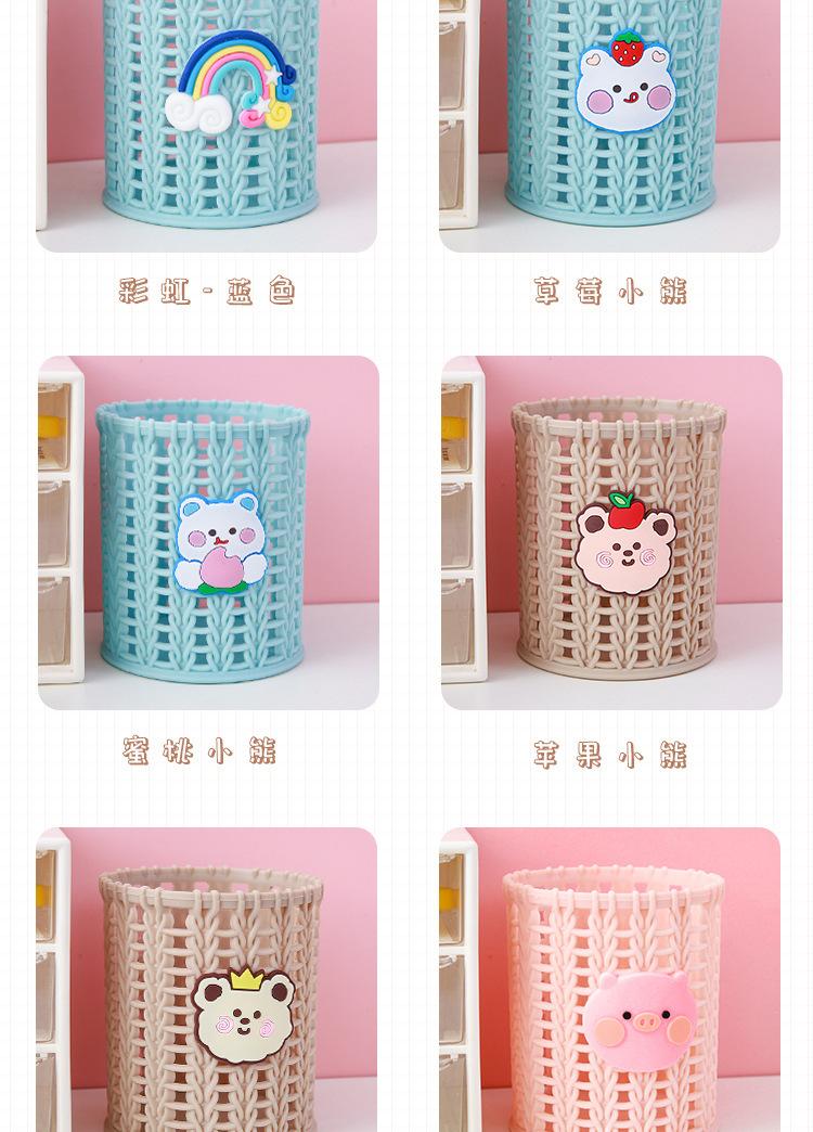 Almacenamiento de Papelería para Estudiantes Escritorio Multifuncional Cubo de Almacenamiento para Brochas de Maquillaje Creativo de Dibujos Animados Tejido de Ratán de Imitación Portalápices Portátil
