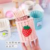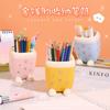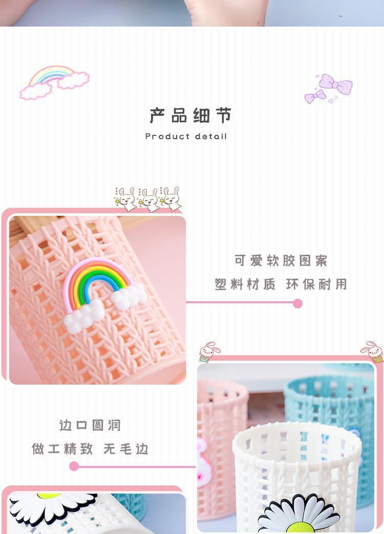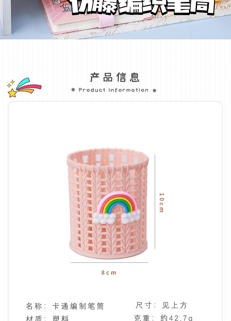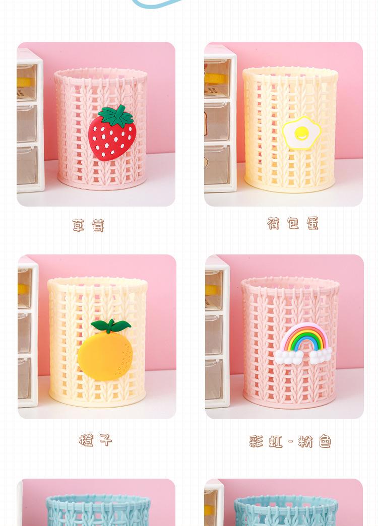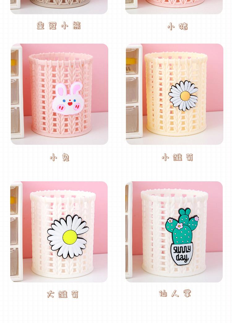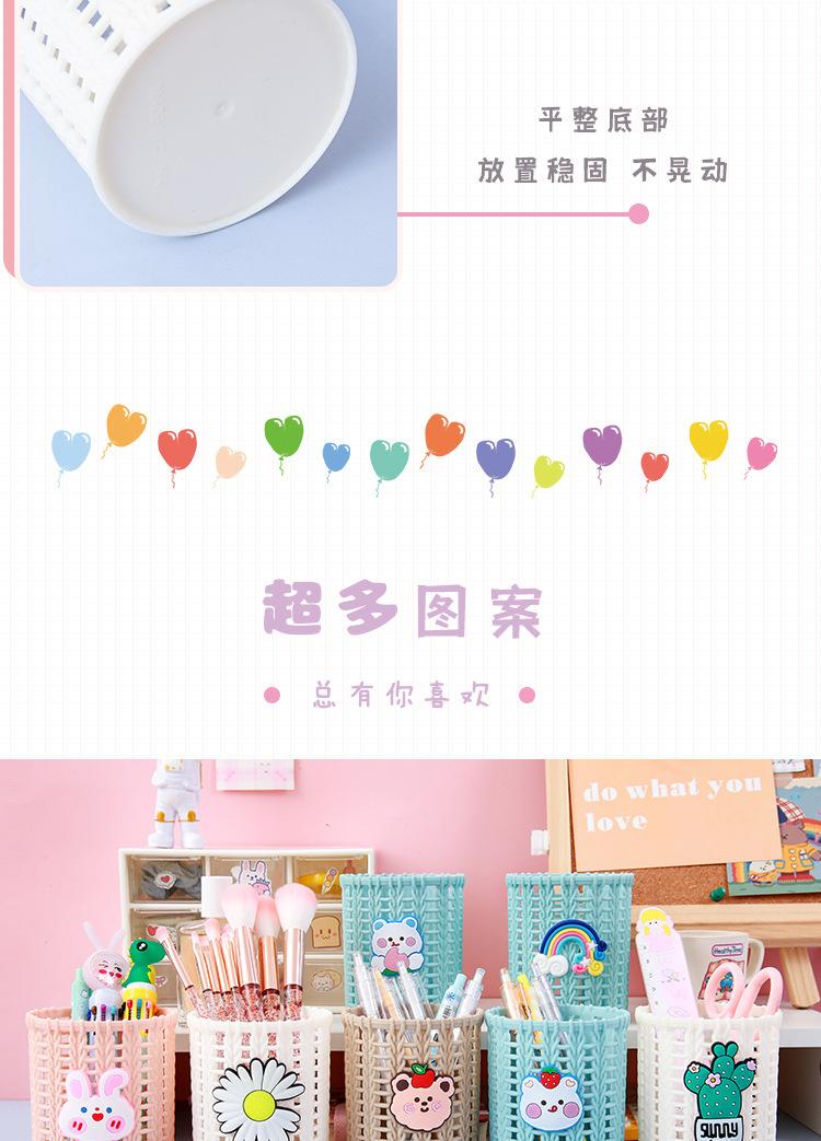 Almacenamiento de Papelería para Estudiantes Escritorio Multifuncional Cubo de Almacenamiento para Brochas de Maquillaje Creativo de Dibujos Animados Tejido de Ratán de Imitación Portalápices Portátil